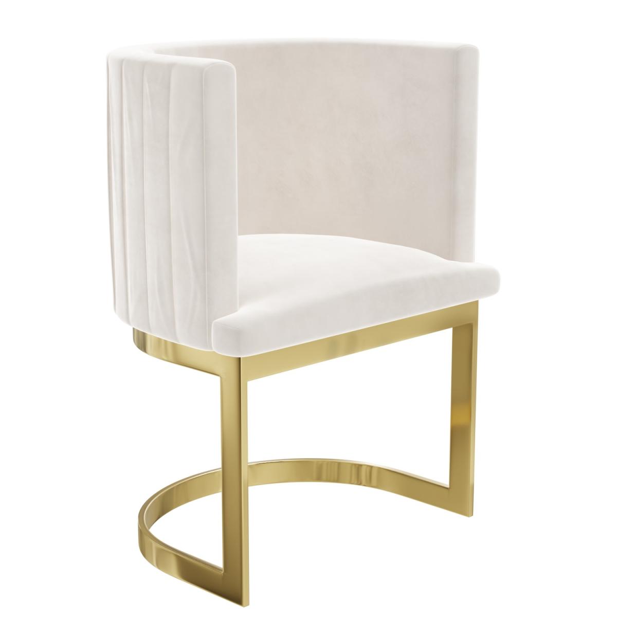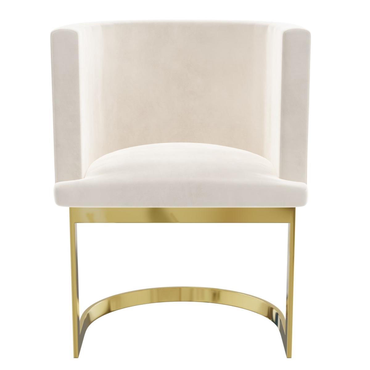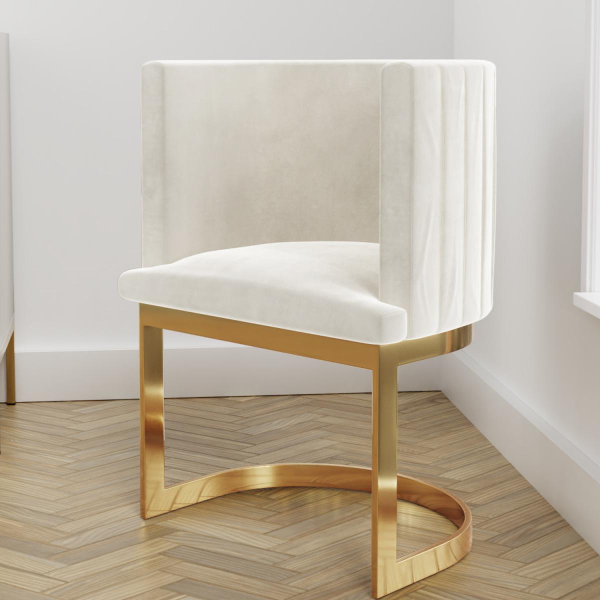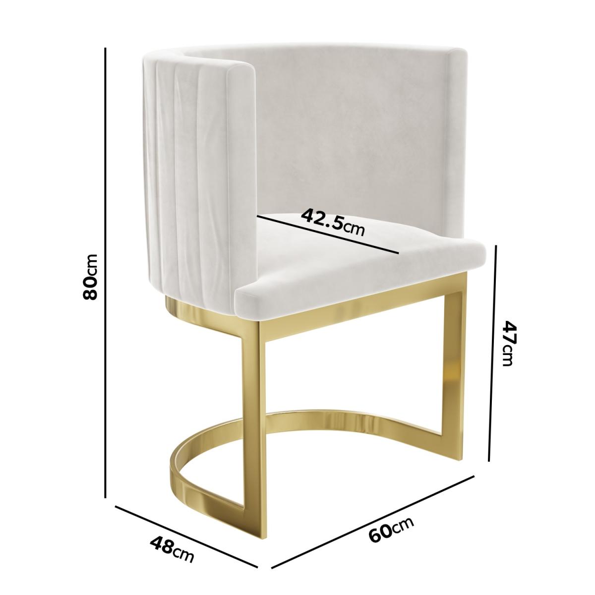 Off-whitevelvet accent chair with elegant curved gold legs Curved backrest and foam filling offer maximum comfort Upholstered in a luxurious, soft-to-touch, white velvet Ideal for your dressing table or as an accent chair Beautiful pleated detailing on the back of the seat Easy assembly, simply attach the legs Need to know Colour: Off-white Finish: Velvet upholstery Material: Fabric, wood, metal and foam Assembly required: Yes