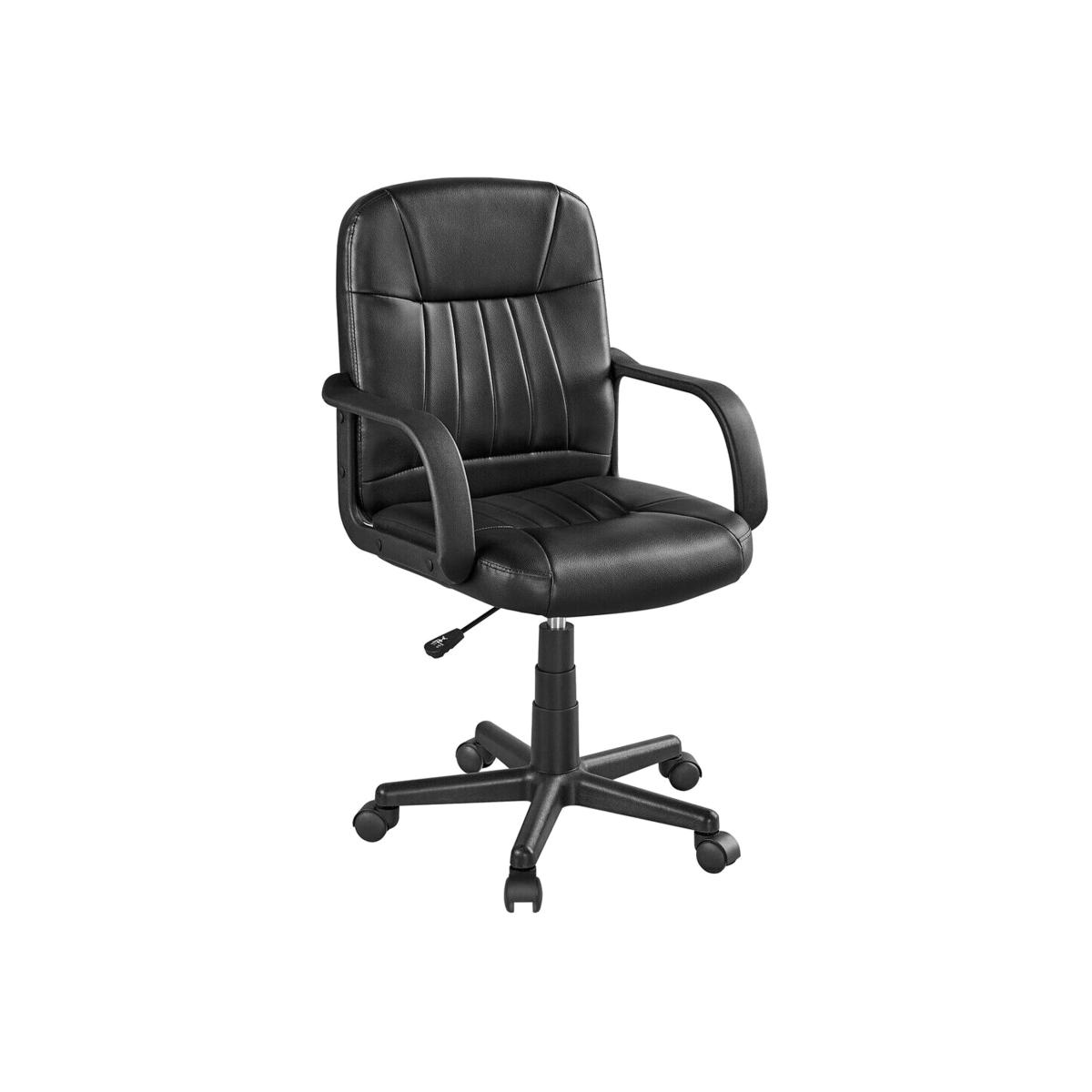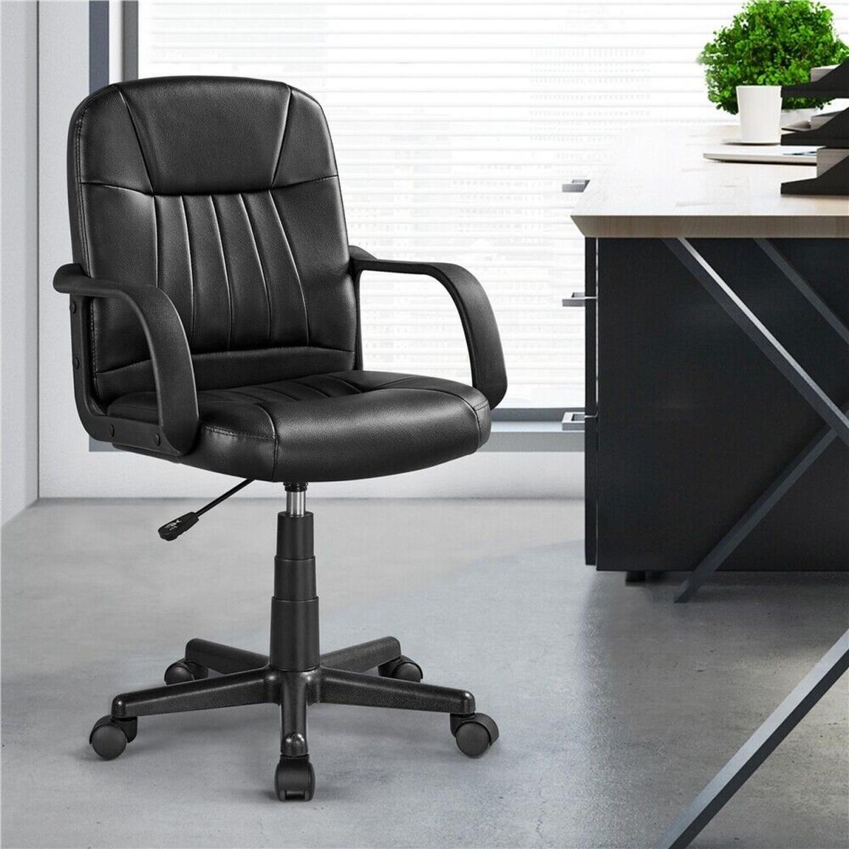 This executive office chair is designed based on the curvature of individuals' backs. The durable frame provides a steady structure to sit in. Classic style with firm finishing touches upgrades your sitting experience to the next level. High density sponge covered with firm artificial leather makes the chair surface both stain resistant and easy to clean. The texture of the back and seat is firm and breathable, with quality and comfort all in one. The executive chair offers smooth 360-degree swivel capability. Featuring durable nylon casters, you can easily move around the chair in your room or working office. Sturdy & durable gas springs also allow users to have a safe sitting experience. The seat height of this chair is adjustable from 40-50cm. Featuring an ergonomic design, this mid-back chair will perfectly fit your body shape when sitting it and provide you with proper lower back support. Bring you ultimate comfort during long working days. Thinking of something new for your office or bedroom? An elegant and durable leather chair can be a nice choice. Featuring a durable metal frame, 360-degree swivel mobility, and adjustable seat height with top-quality materials, this chair is fully equipped to be your office partner during long working hours.
