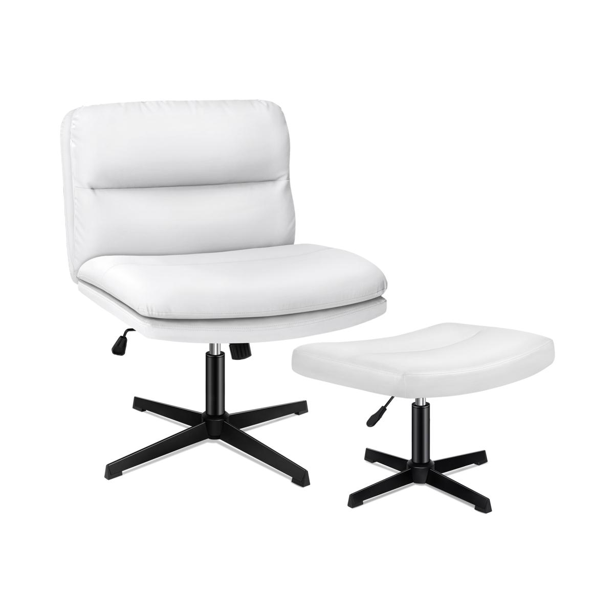 Designed to offer an unparalleled seating experience, the ELFORDSON office chair is a perfect blend of comfort, style and functionality. Upholstered in high-quality PU leather/ linen fabric/ velvet and generous foam paddings, this computer chair ensures optimal comfort and durability. Whether you're typing, playing games or taking a quick break, the tilt mechanism assists you in finding the perfect position. You can enjoy the tilt function when you want to relax, and you can also lock it in place when you need to sit upright and focus. Constructed with a sturdy criss-cross chrome base and SGS-approved Gas-Lift system, the desk chair is durable. You don't have to worry about tipping over or exploding. The 360-degree swivel and height-adjustable seat add more convenience. The swivel and height-adjustable ottoman comes with soft padding, maximizing comfort when you need to take a break or stretch your legs.