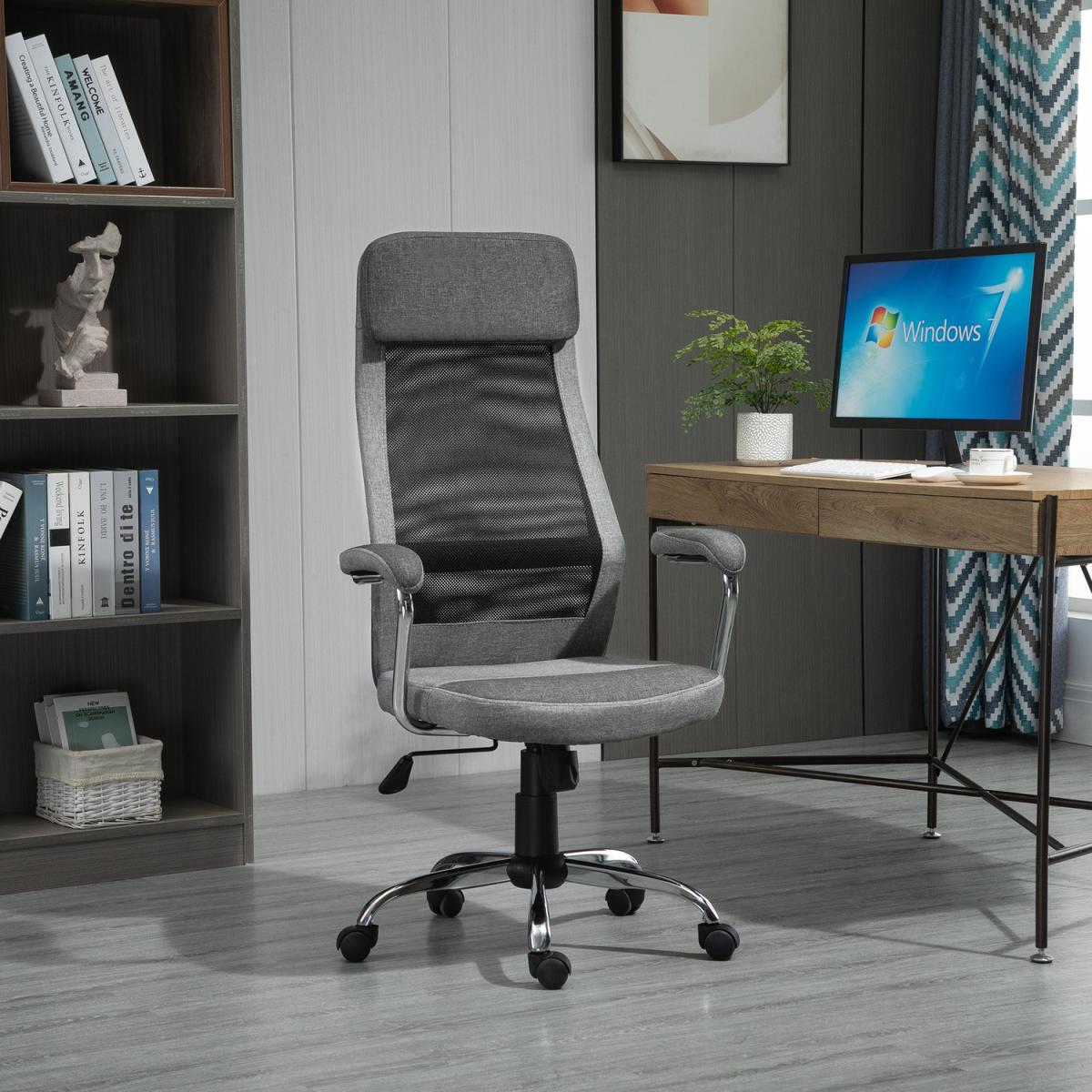 I really like this mesh high back swivel chair - it’s a practical choice that offers excellent support, making it great for long work sessions. The light grey colour is versatile and pairs well with a variety of office decors, from minimalist schemes to more eclectic interiors. It works particularly well in modern, contemporary spaces, especially when paired with wooden or matte finishes to soften the overall look. For styling tips, consider placing it in a corner with a sleek desk, adding some textured accessories or greenery nearby to create a balanced, functional workspace. Its neutral tone means it won’t dominate your room, allowing other design elements to shine.