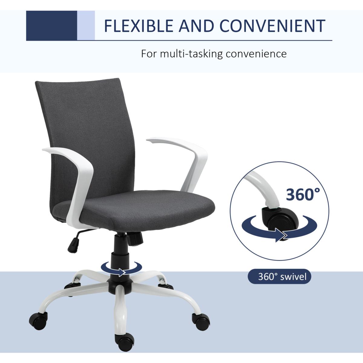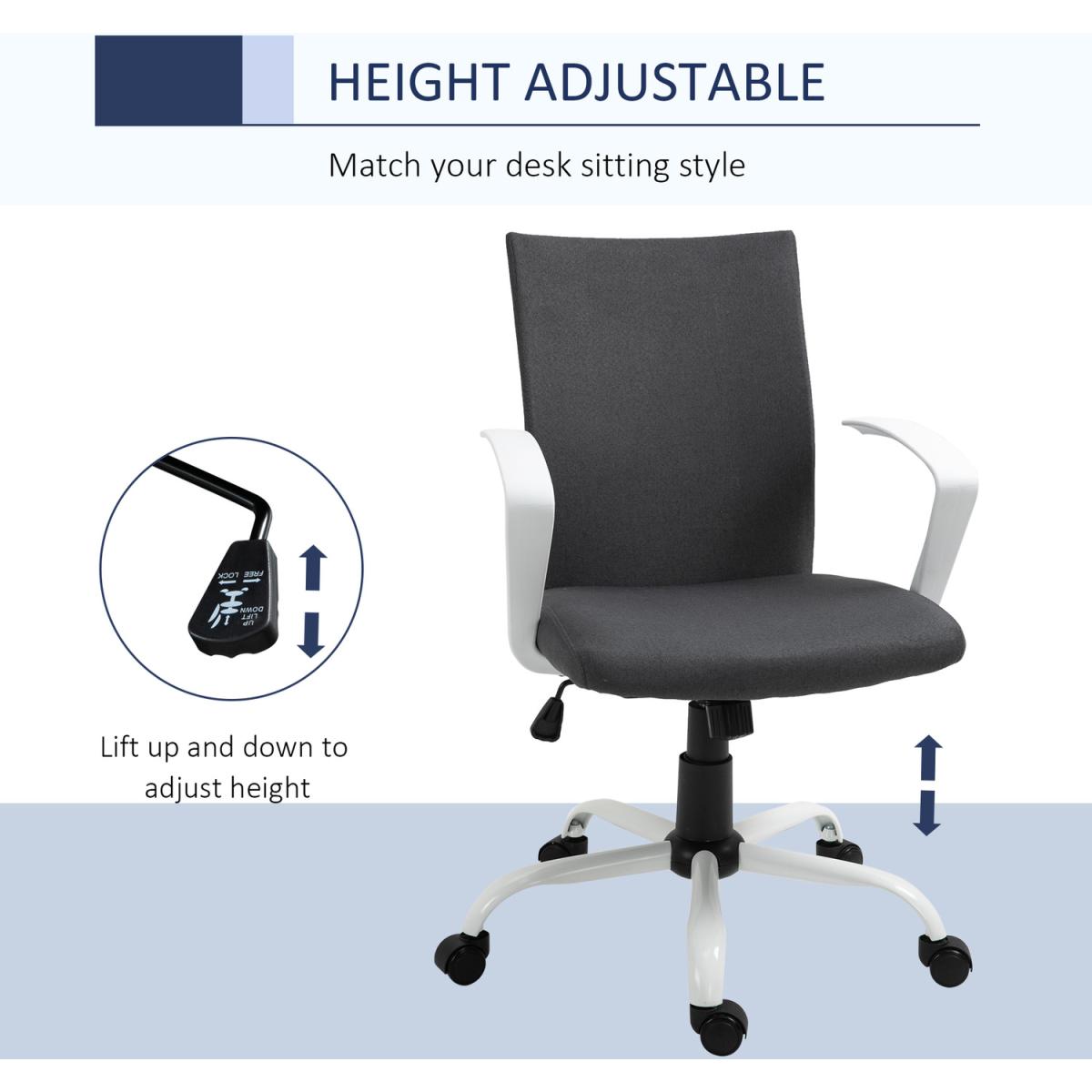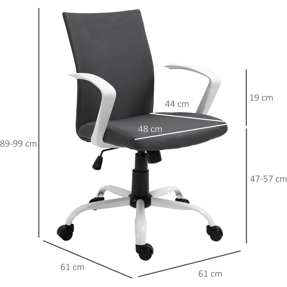 Working whenever will always be comfortable with this Vinsetto office chair. Adjust the seat height with the easy-control lever underneath the comfy chair - between 89cm and 99cm, work at a level best for you. Features a padded seat for comfort, with a high back and fixed armrests to support your body. The 360 swivel seat moves with your body as you move, so you don't strain yourself. Sit down in comfort and work all day long - no hassle at all.