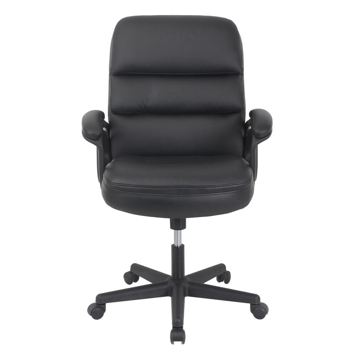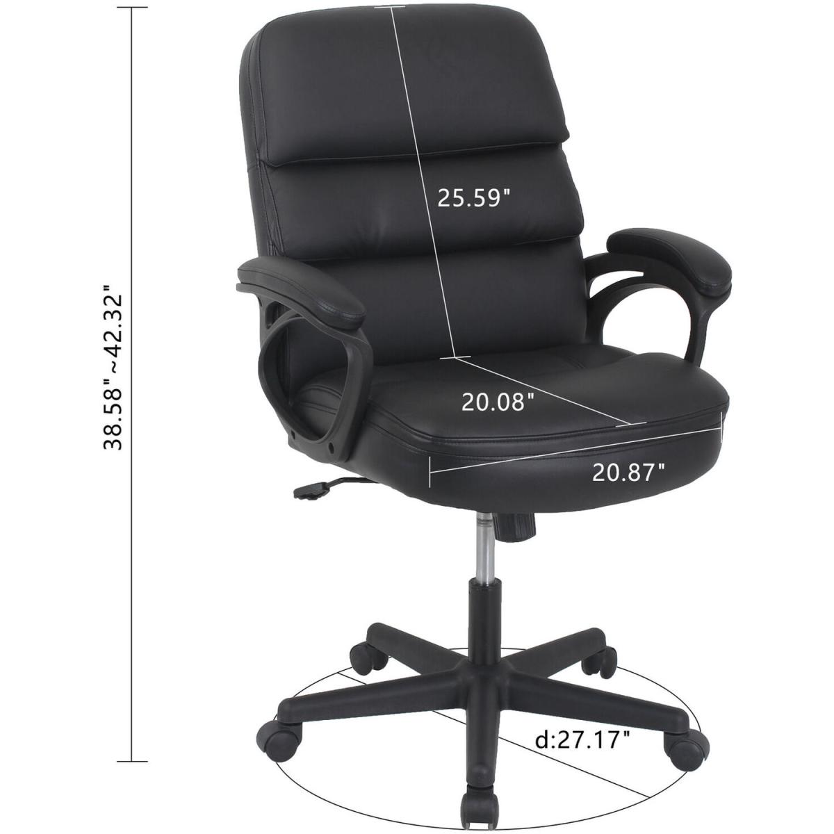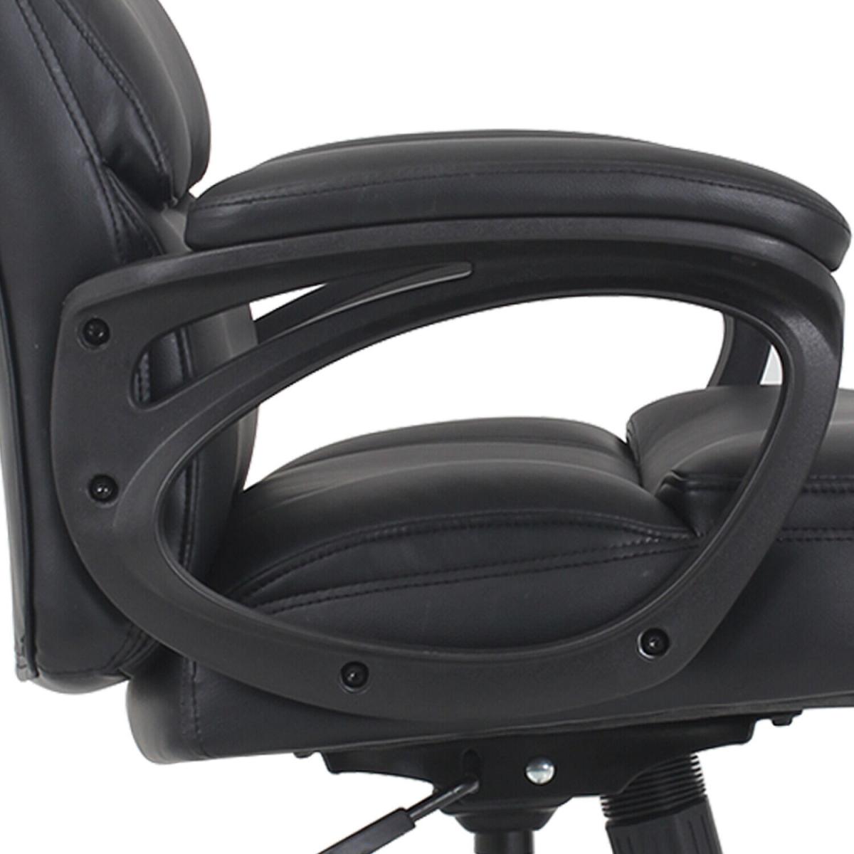 This executive chair will treat you to relaxing sitting, keeping your back perfectly aligned to skyrocket your performance! Style, quality, comfort durability meet in an executive chair that stands out! And it is providing you with a top-standard high-back chair, submitted to rigorous quality testing and quality assurance to ensure the ergonomic office accessory you need. Features. Padded mid-back rolling office chair upholstered in durable polyurethane bonded (faux) leather. Height-adjustable padded seat, and padded armrests perfect for home office, computer desk, guest workstation, or conference room.5-legged base with durable casters for smooth-rolling mobility, 125kg max weight capacity. Assembly instructions are included, and can be assembled in 15 minutes