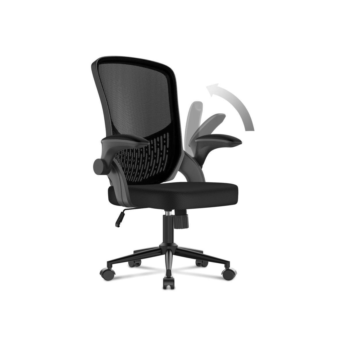 This ergonomic office chair offers full-body support for long hours of comfort. The backrest features a built-in storage basket for easy organisation, while flip up armrests allow space saving storage under your desk. With soft cushions, a breathable mesh back, and adjustable height, it's designed for comfort and versatility. The chair also includes 360 degree wheels, a rocking function, and a sturdy metal base with SGS certified gas lift for durability and stability.