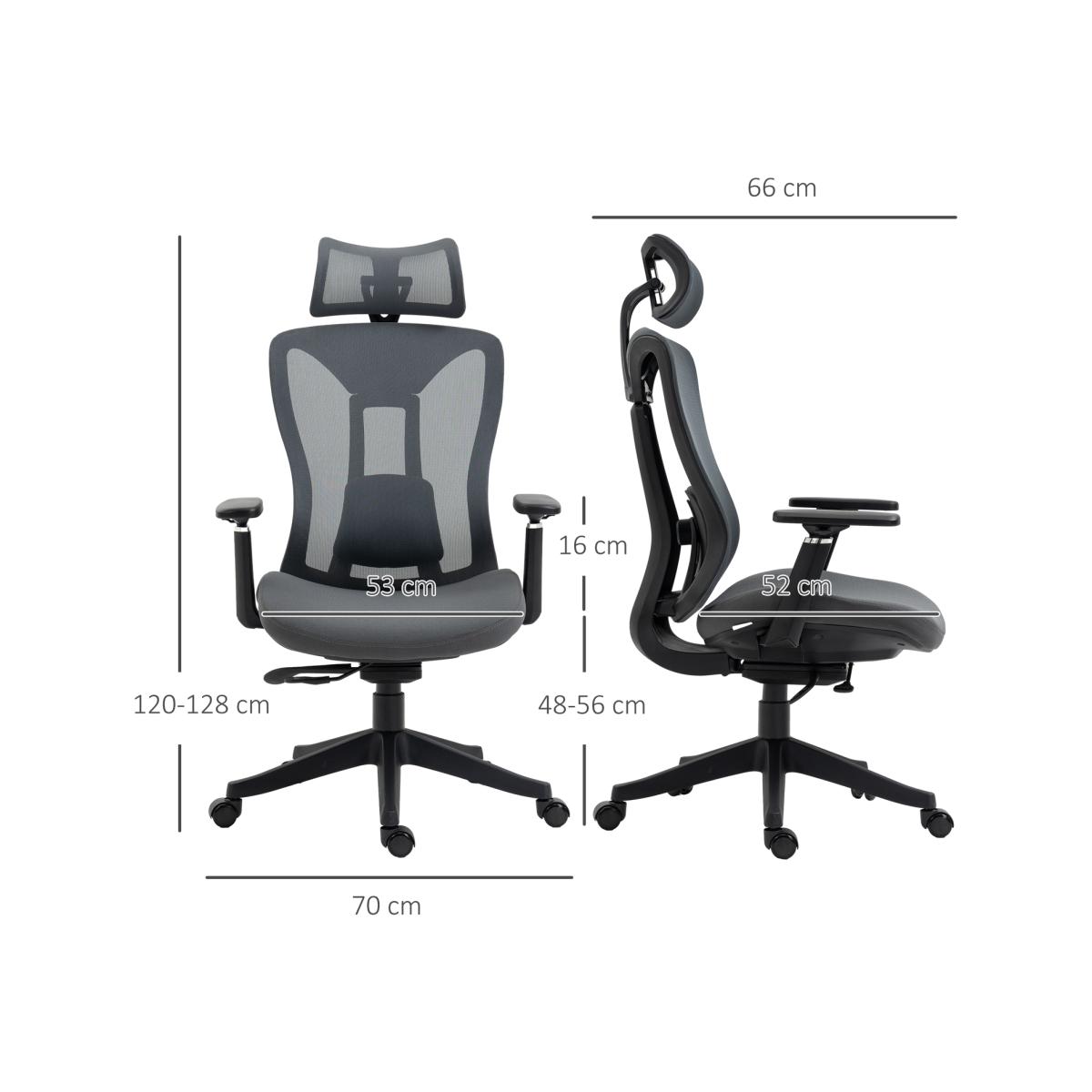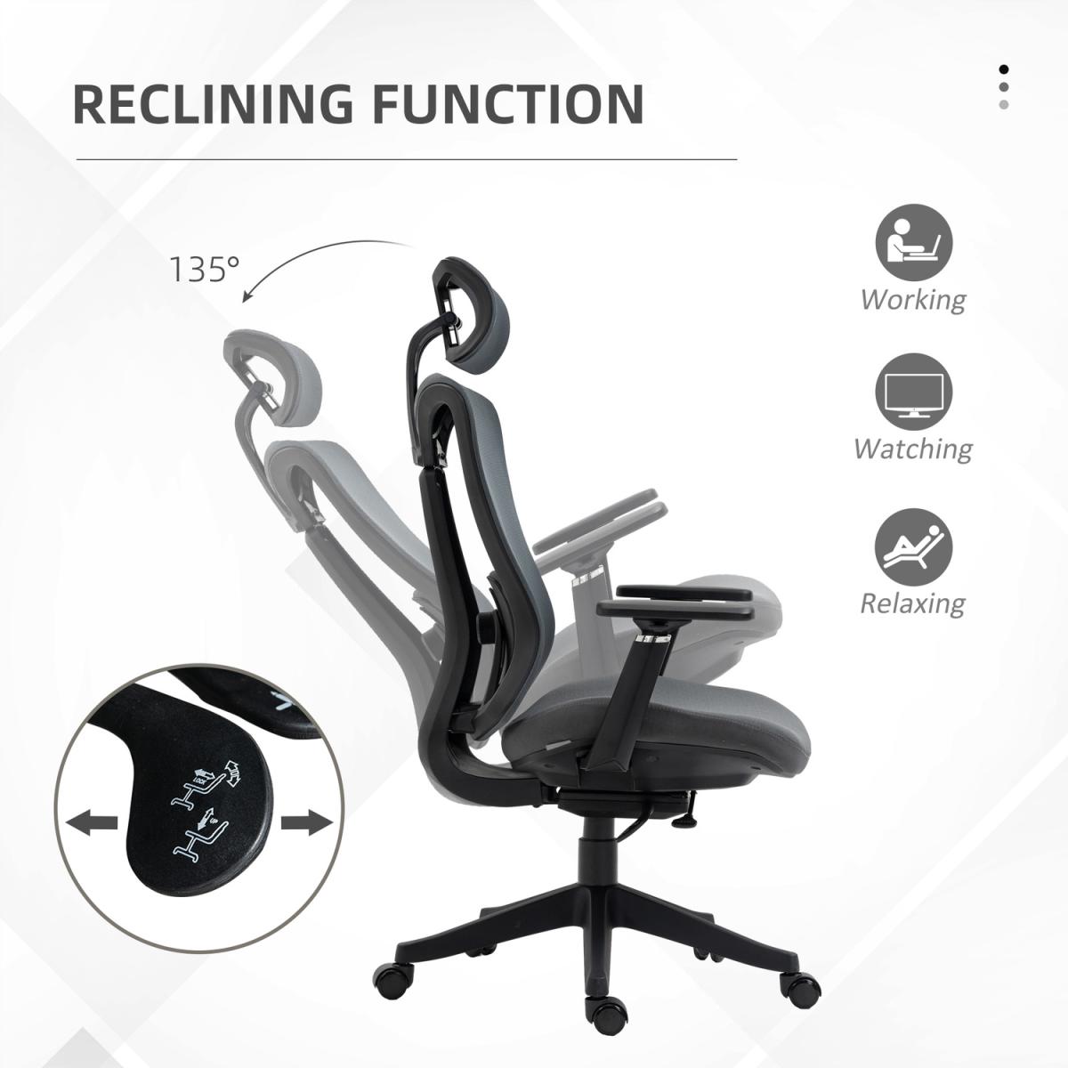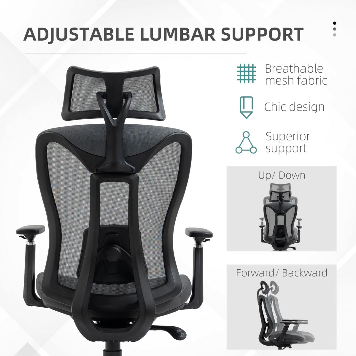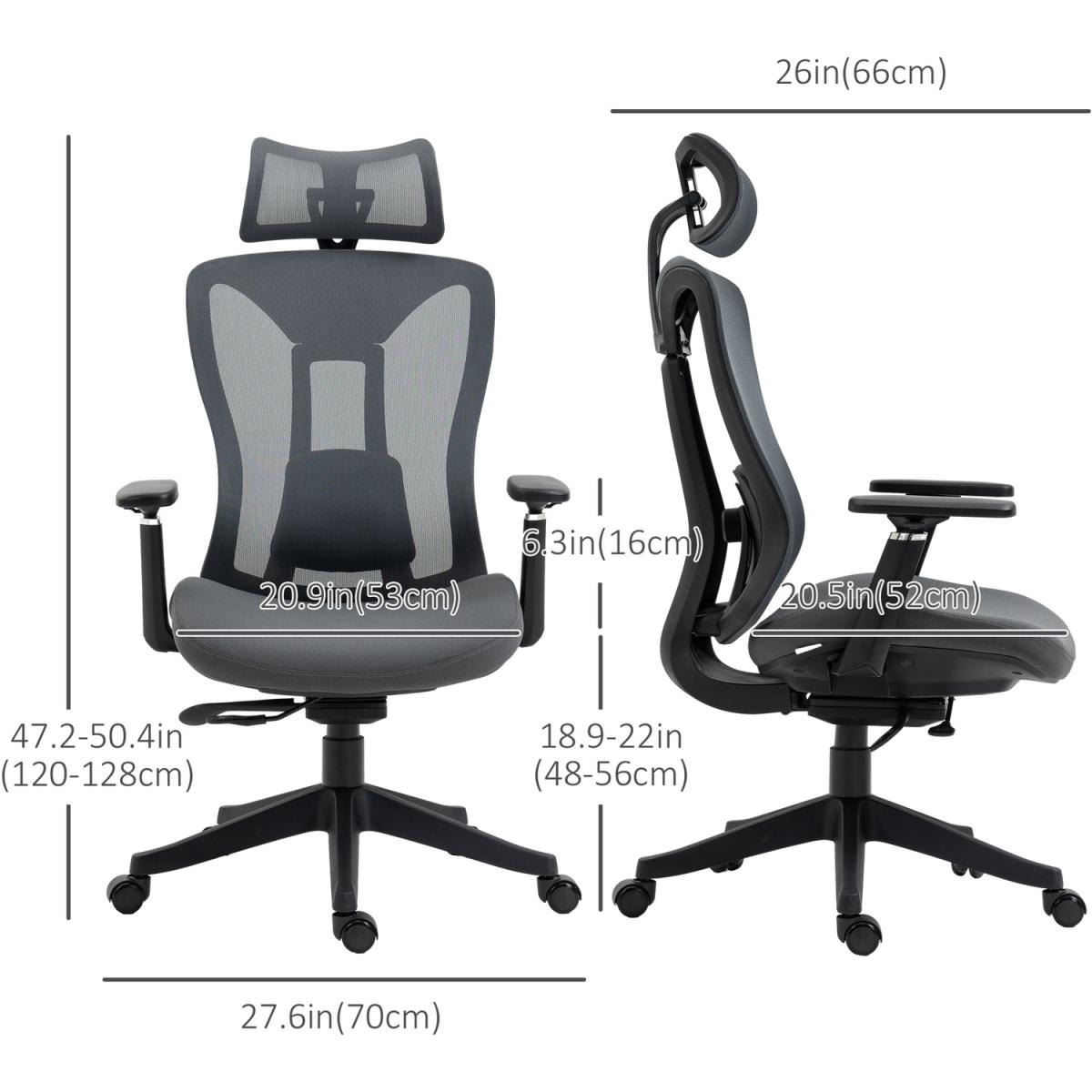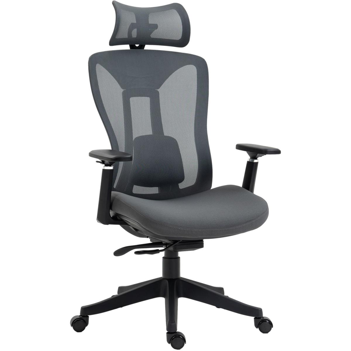 Office Chair with Lumbar Support Headrest 3D Armrest Sliding Seat - Grey