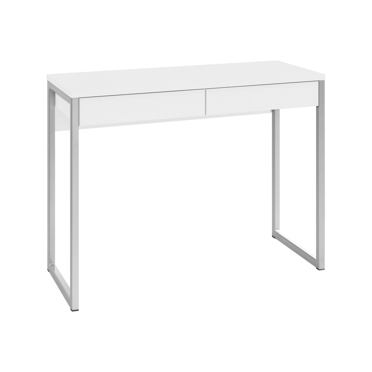 This desk is a sleek choice for a minimalist or contemporary home office. I love its high gloss finish, which adds a touch of modern sophistication while reflecting light and helping small spaces feel brighter and more open. The white surface works well with neutral palettes but can also serve as a clean backdrop for colourful accessories or organisational tools. It's practical too, with two drawers providing handy storage for stationery or documents, keeping the worktop clutter-free. To style it effectively, consider pairing with a light-coloured or wood-toned chair, adding a textured rug underneath, and keeping accessories minimal to maintain its streamlined look. This piece suits both home offices and multifunctional spaces where a clean, organised aesthetic matters.