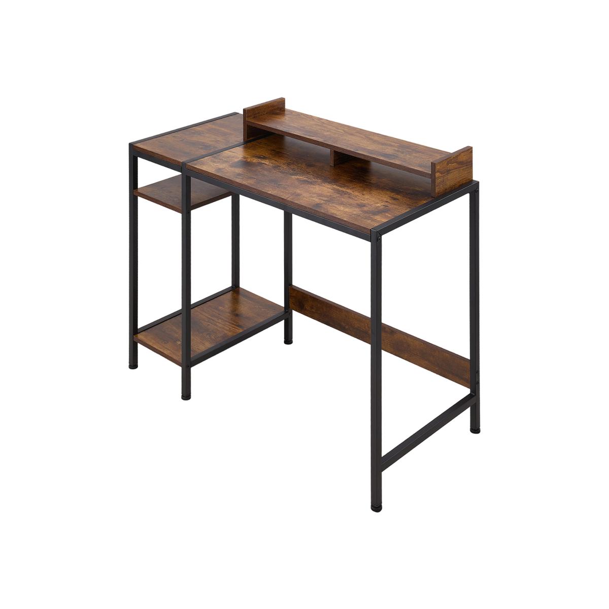 This office desk offers a simple design tailored for a comfortable and organised workspace. The spacious desktop is perfect for placing laptops, keyboards, and other devices. The monitor stand at the top can adjust the screen to eye level, reducing neck strain. Below the stand, there are two compartments for storing small items, keeping the workspace tidy. On the lower left side, two open shelves provide easy access to the computer tower or other office essentials. For added stability, a horizontal support bar is fixed at the bottom. Suitable for daily office work, studying, or home use, it is an ideal choice for enhancing both efficiency and comfort.