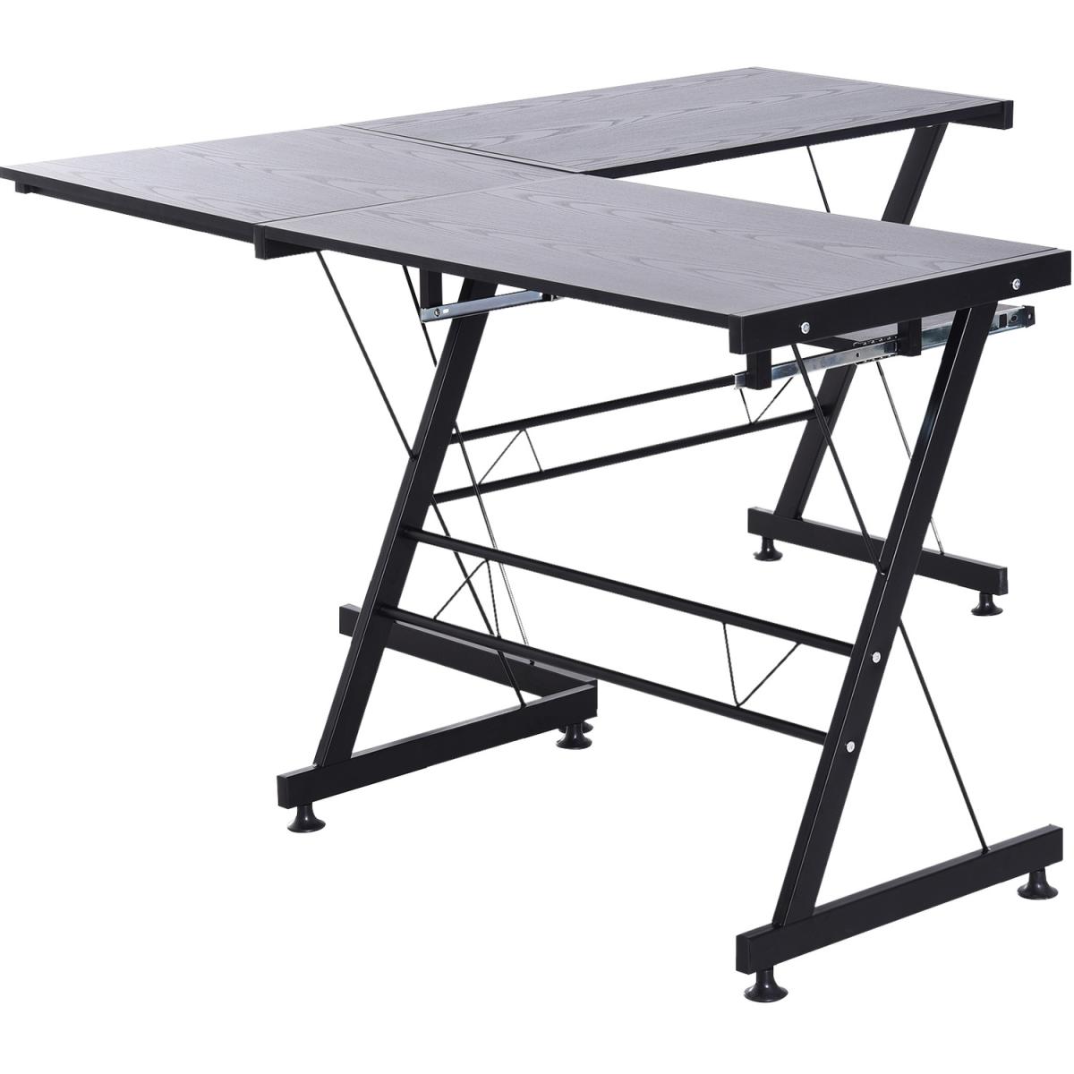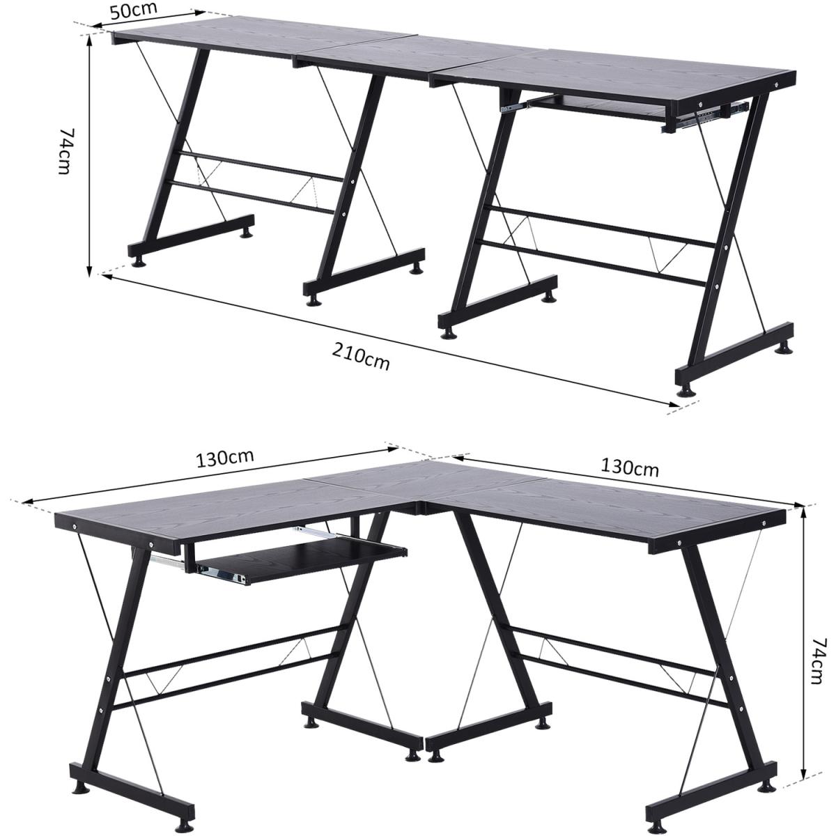 Never be stuck for a desk again, no matter the shape of the area thanks to this modern desk from HOMCOM. Made with a powder-coated steel frame for reliability and strength that supports up to 20kg, it features three spacious and laminated worktops made from MDF top for a sleek and attractive look that is also very easy to maintain. Changeable to either an L shape or completely straight, this is a desk that truly caters to you and your requirements, with a slide-out keyboard tray and adjustable feet to keep stable for the finishing touches. A superb addition for every home and office.