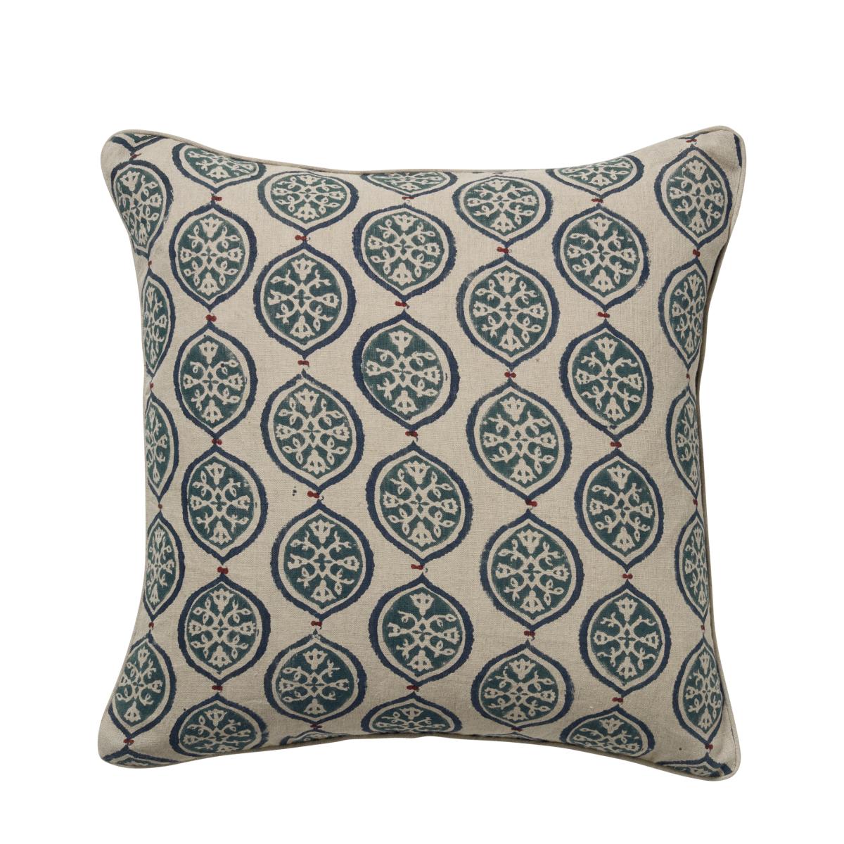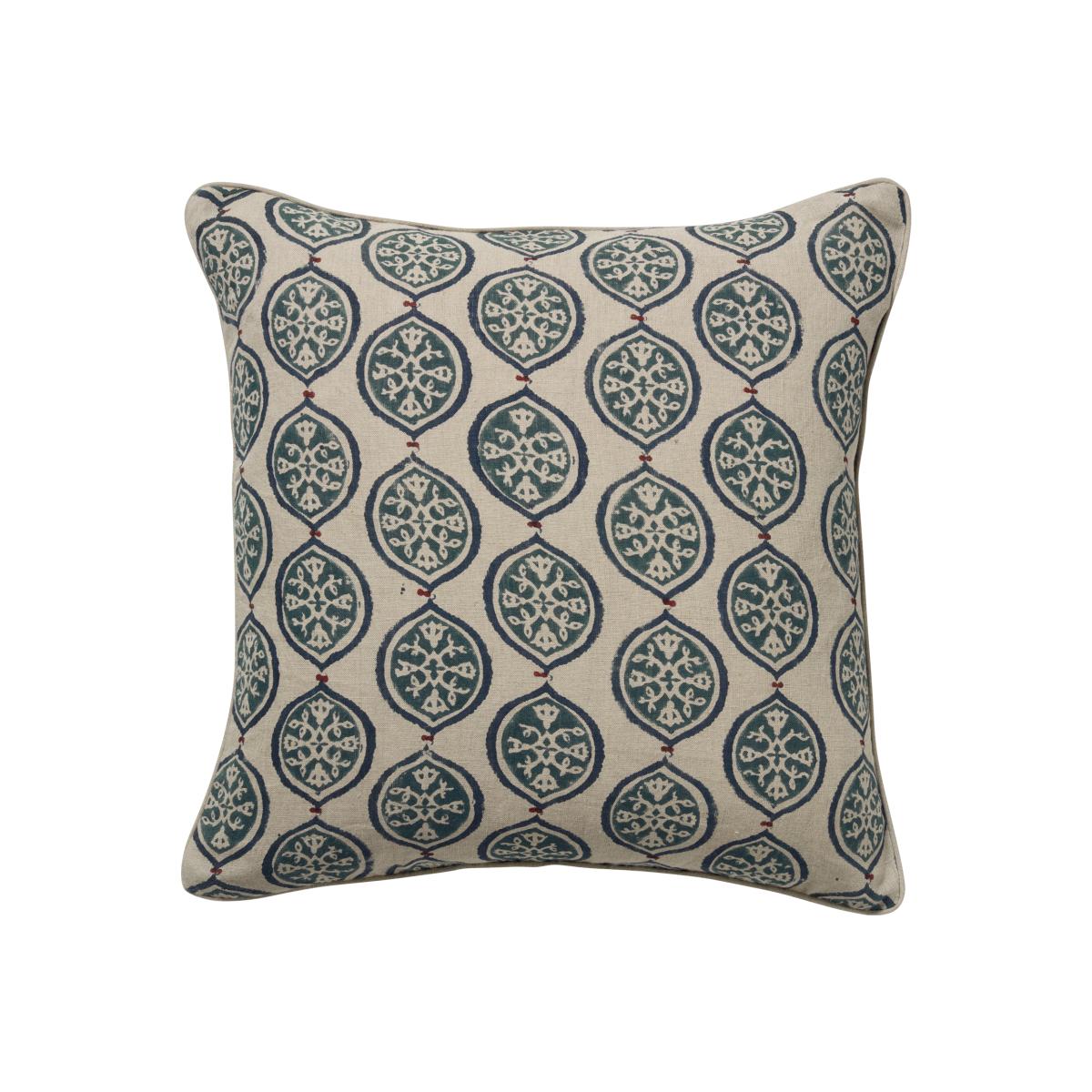 A little bit of pattern goes a long way. Adorned with an abstract ogee print on both sides, this design works as either a coordinate in a sofa cushion arrangement or as a stand-alone statement piece on your favourite armchair. Made from 100% linen, the design is block-printed by hand using red and blue dyes.
