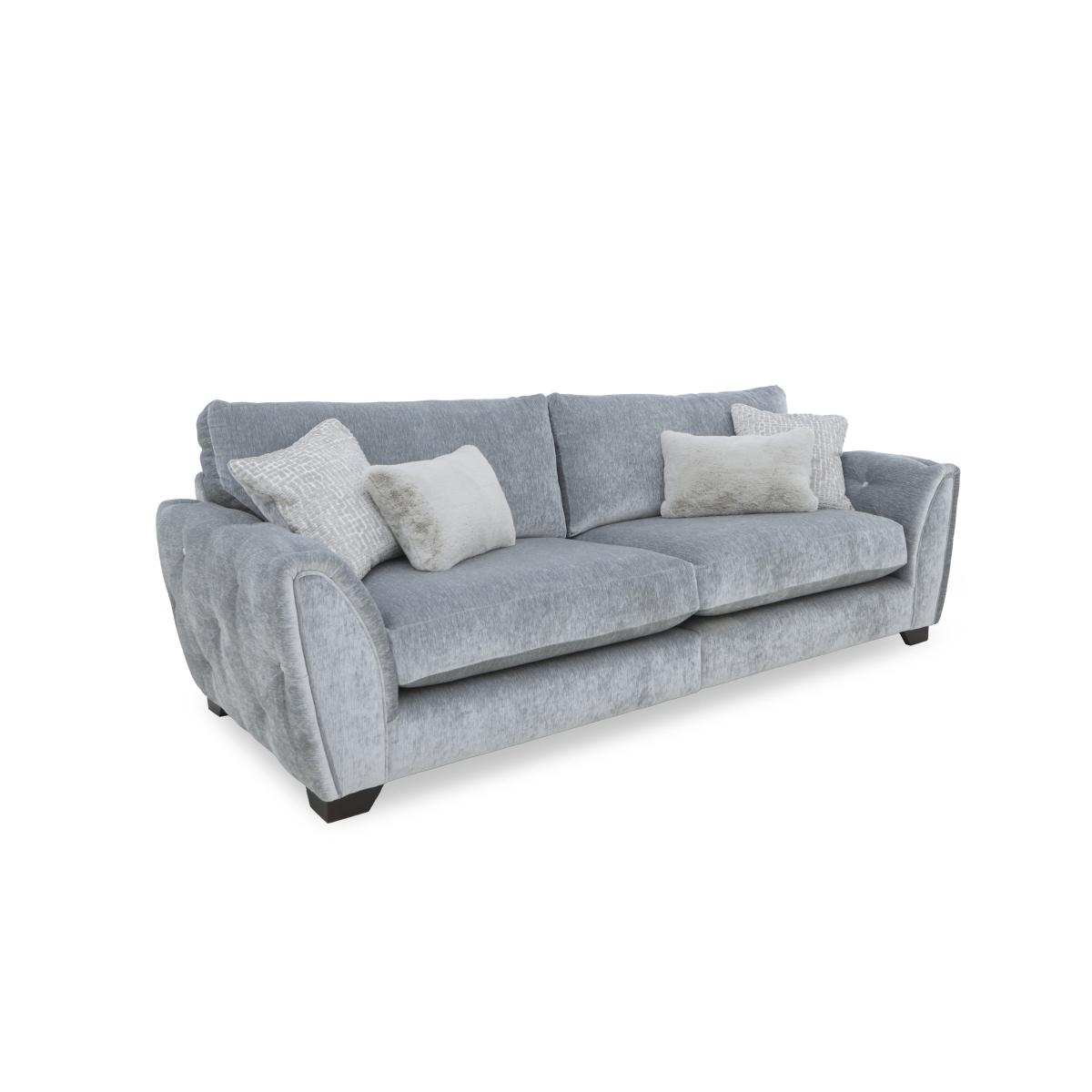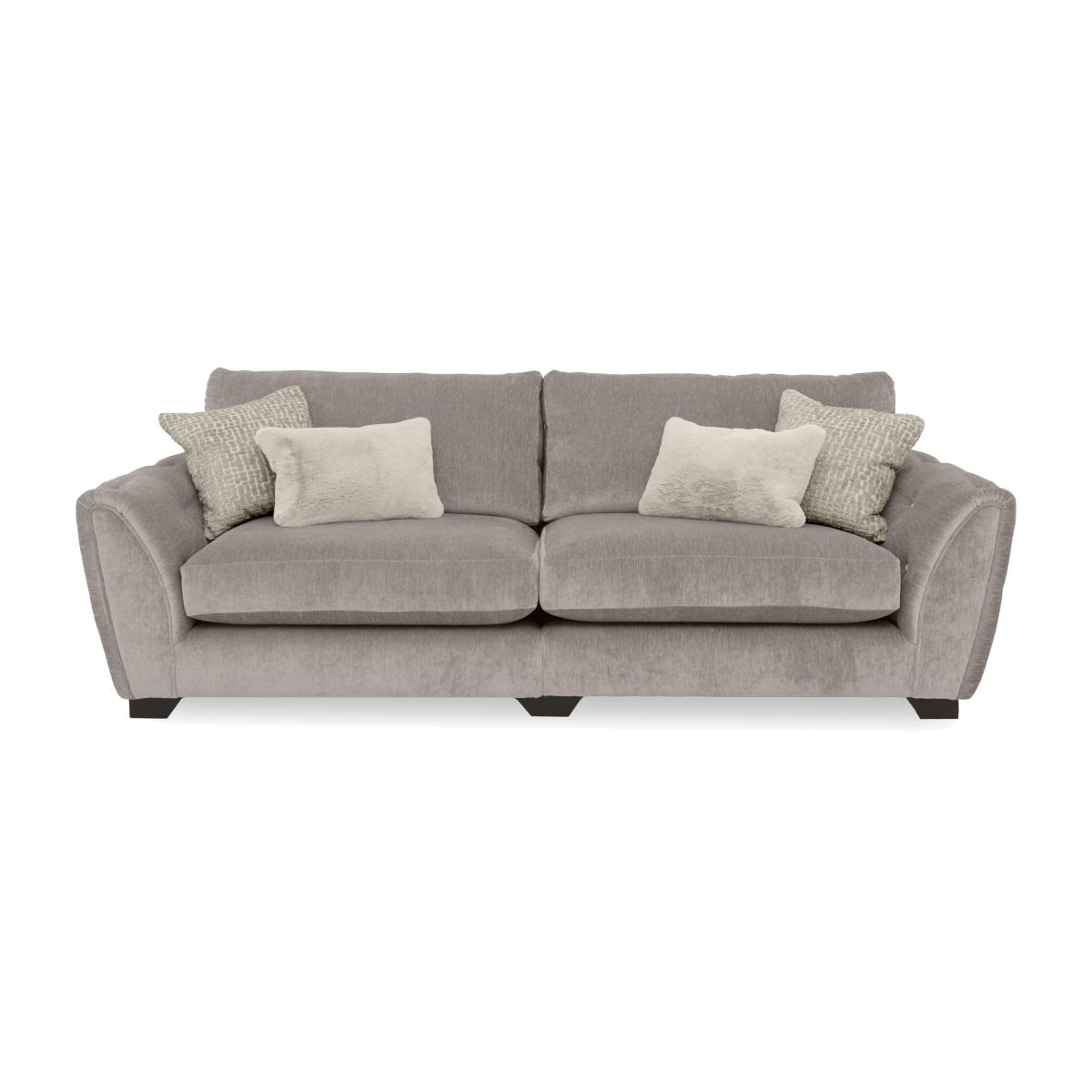 Everyone deserves a little glam luxury in their lives – and in their living rooms. Part of our Oh So Glam collection, the gorgeous Aphrodite sofa range brims with elegant modern style and indulgently plush comfort. With sweeping curved arms embellished with buttoning, incredibly comfortable plumpness-guaranteed seat cushions and feather-filled accent cushions, every detail is designed to elevate your living space and make your lounging more luxe. Upholstered in a wide choice of fashionable fabrics, the range includes large and small sofas, a snuggler chair, a swivel chair and a footstool. Handcrafted in the UK, our Oh So Glam Aphrodite range is exclusively available at Furniture Village. With curvaceous lines, beautiful upholstery, plumpness-guaranteed cushioning and elegant details, it’s so easy to fall in love with our Aphrodite four-seater split frame sofa. Luxe lounging from our Oh So Glam collection. Why you'll love it You can’t help but fall in love with our Aphrodite range. Part of our indulgent Oh So Glam collection. This 4-seater sofa is elegant, inviting and entirely luxurious. Beautifully curved arms are accentuated with flawless buttoning. Plumpness-guaranteed Duo Flex seat cushions are just so comfortable. Reversible seat and back cushions feel fantastic for longer. Comes with 4 feather-filled accent cushions – 2 square scatters and 2 bolsters. In a wide selection of fashionable fabrics. Choose a dark walnut or lighter mid-oak finish for the feet. The split frame makes it easier to bring this sofa home. Handcrafted in the UK exclusively for Furniture Village. This 4-seater sofa is part of our Oh So Glam Aphrodite range. What you need to know Medium comfort level. Seat suspension: sprung. Seat cushioning: Duo. Flex. Cushioning is reversible. Back support: elasticated webbing. Back cushioning: fibre. Cushioning is reversible. Feet are removable. To maintain cushion shape and fullness, be sure to plump daily. Unzip back cushions halfway prior to plumping to allow air to circulate. Rotate seat cushions for more even wear. Some fabrics can show wear on areas of more use or in direct sunlight. Clean regularly using a soft brush or vacuum with the curtain attachment. Deal with any spills promptly. Professional cleaning advised for oil- and grease-based stains. Please read our upholstery care guide for more advice. Item code:APHR4S----013