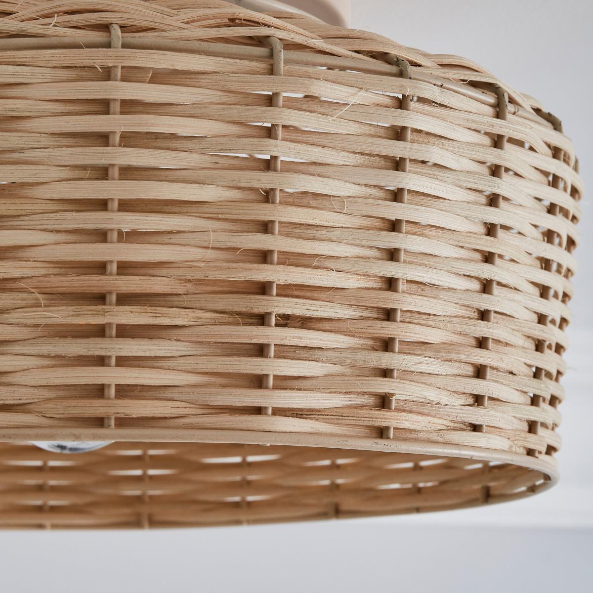 I love this ceiling light for its blend of simplicity and natural texture, making it a versatile choice across various interiors. It works particularly well in cosy, country-style or coastal schemes, where the rattan detail adds warmth and a relaxed vibe. For a more modern look, pair it with minimalist decor and neutral tones to let the natural material shine. Practical styling tips include positioning it in living rooms or bedrooms where you want a subtle statement piece, and pairing it with warm LED bulbs to enhance the tactile quality of the rattan. Overall, it’s a functional piece that adds a touch of organic charm without overwhelming the space.