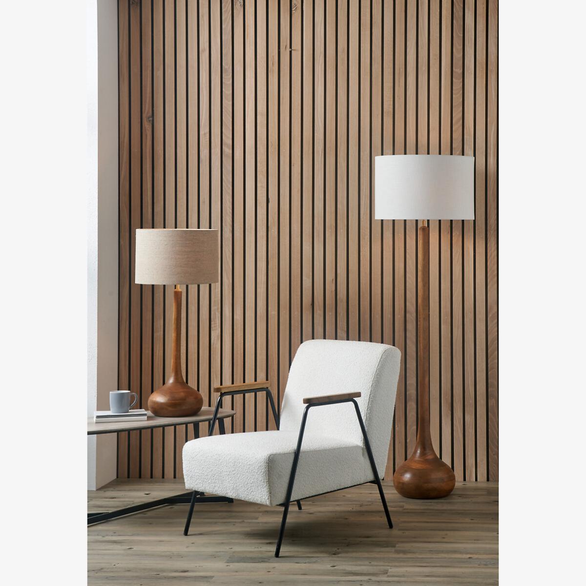 I love this floor lamp base for its warm, natural wood finish and clean, minimalist silhouette, making it a versatile piece that adds a touch of Scandinavian-inspired simplicity to any interior. It works particularly well in modern, mid-century, and coastal schemes, where its organic texture can complement both neutral palettes and soft, muted colour schemes. Practical styling tips include pairing it with a textured or fabric shade to soften the look or positioning it alongside a comfortable reading chair to create a cosy nook. Its understated design also allows it to blend seamlessly into a variety of settings, from living rooms to home offices, making it a practical yet stylish lighting choice.