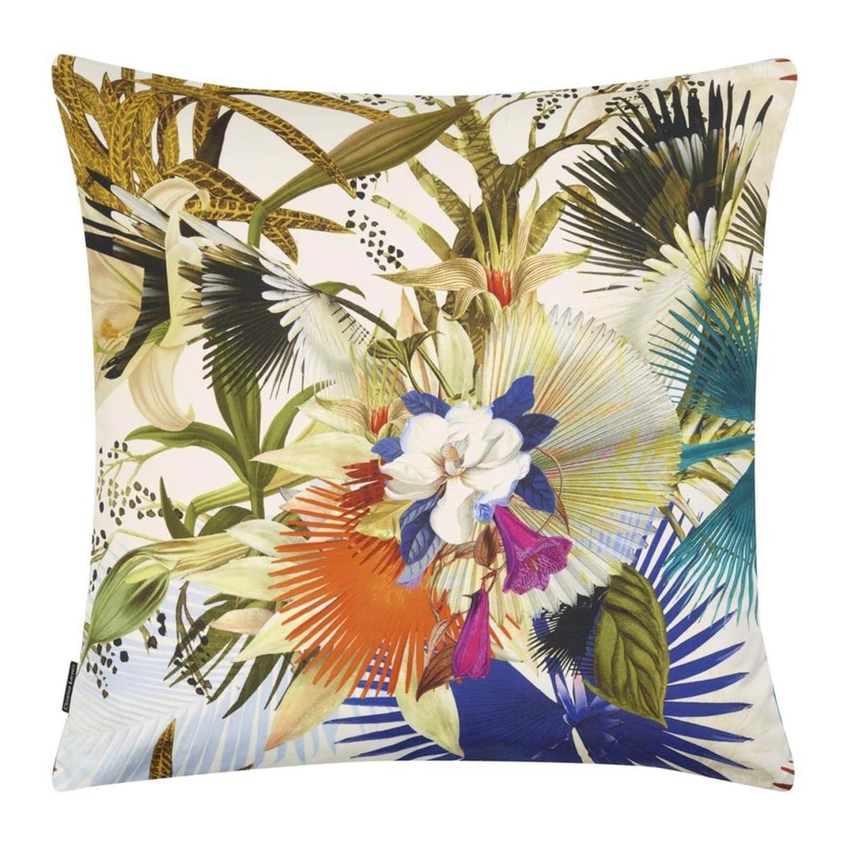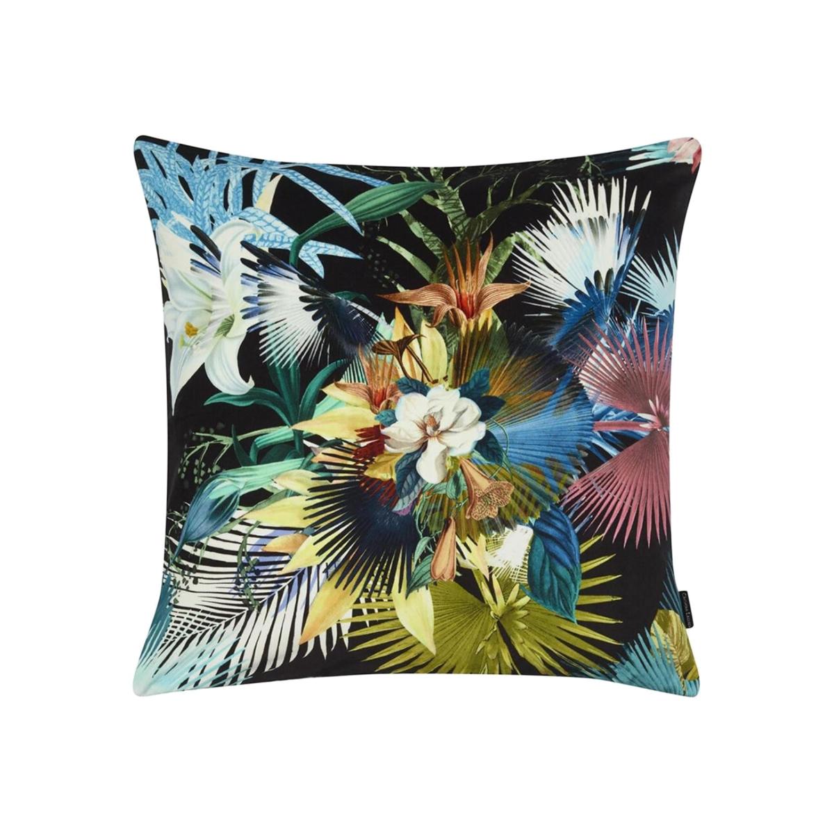 Add a tropical twist to your interiors with the Oiseau de Bengale cushion from the iconic fashion house of Christian Lacroix. Digitally printed with a collage of exotic flowers and foliage onto a soft velvet front and cotton back, one side is dark and the other is light. The perfect accent cushion for bold coloured armchair in the bedroom or living room.