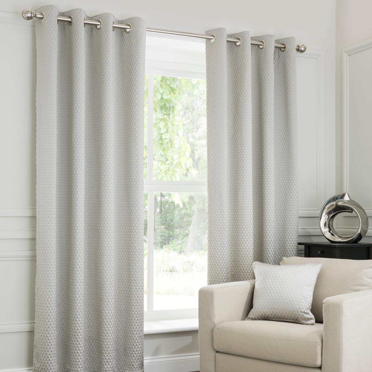 Crafted in a dove grey colourway, these eyelet curtains are complete with a luxurious jacquard design and are perfect for complementing a variety of décors. These curtains are fully lined to retain warmth and for added privacy. Complete with a modern eyelet header for easy installation and smooth movement across your curtain pole. Available in a selection of sizes to suit your requirements and a matching cushion is available to purchase separately. Please note: these curtains are sold as a pair.