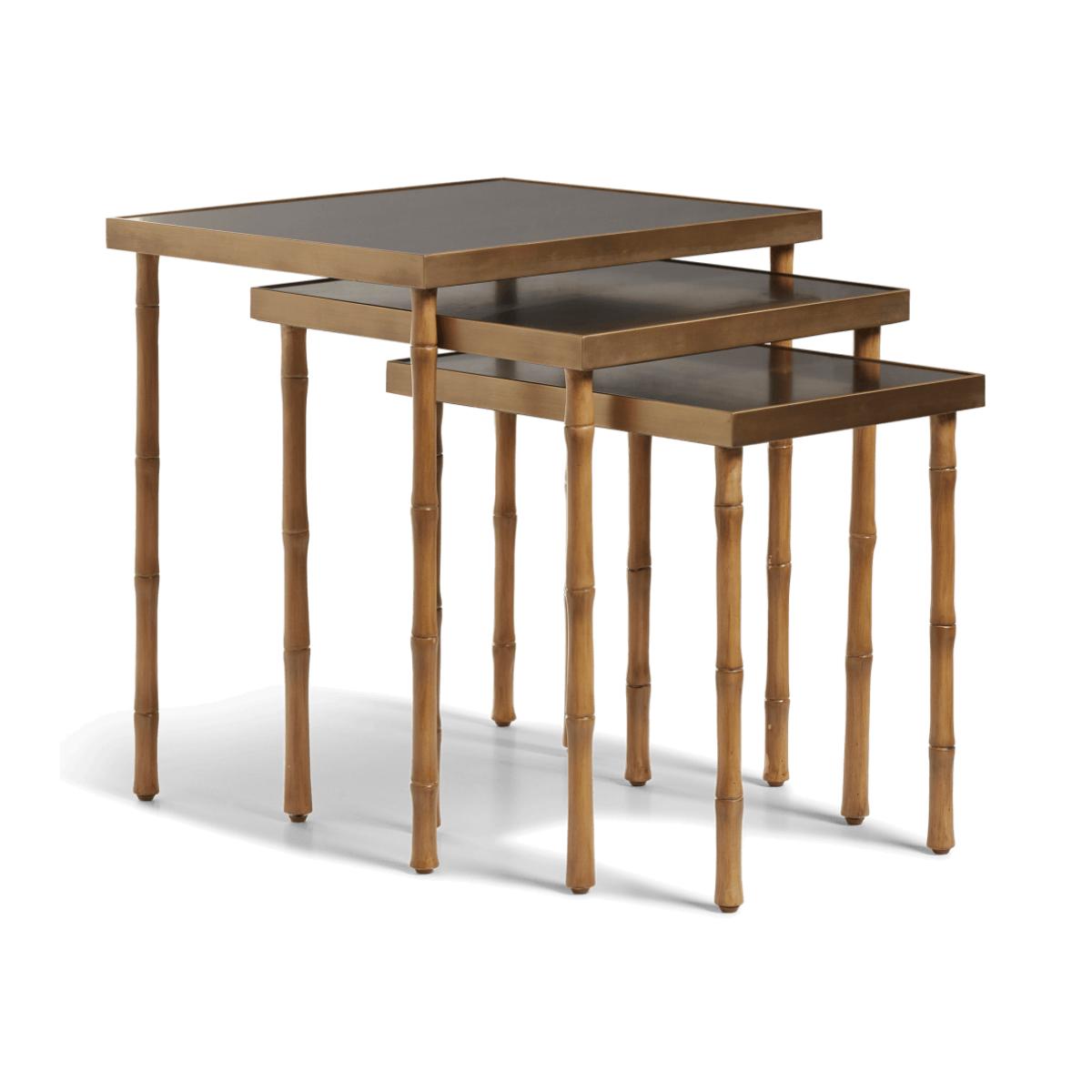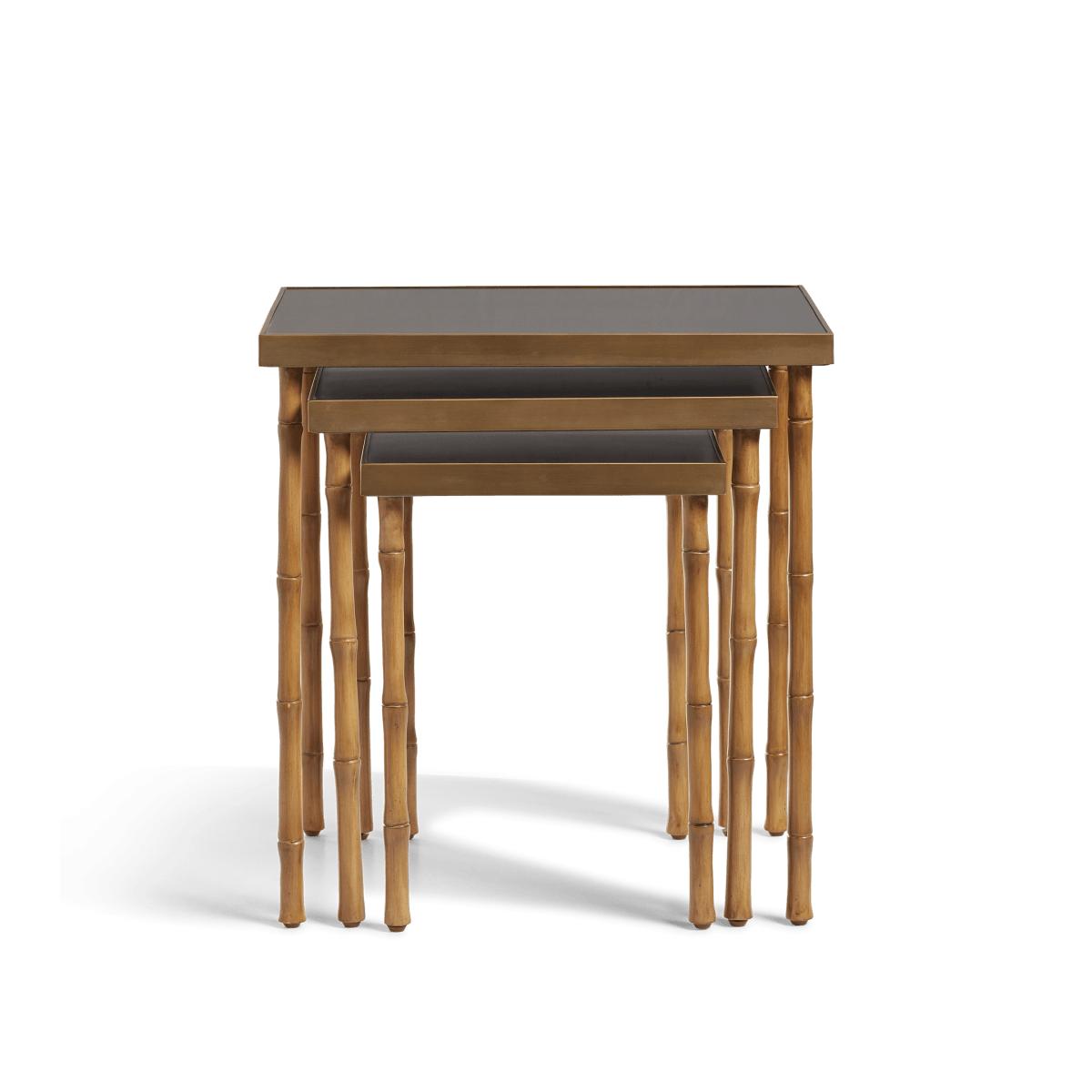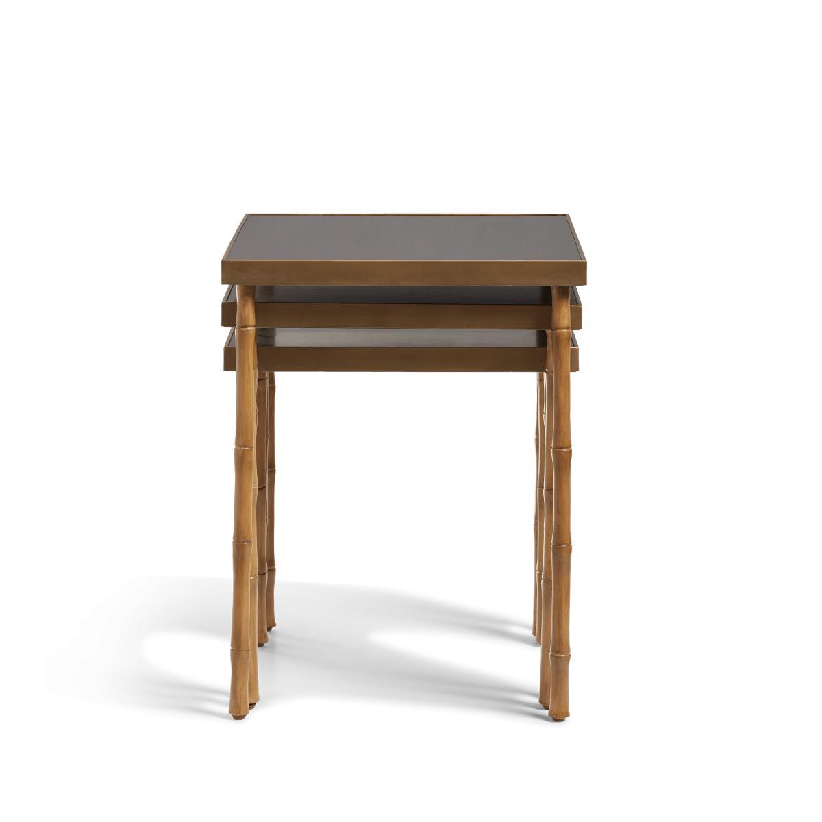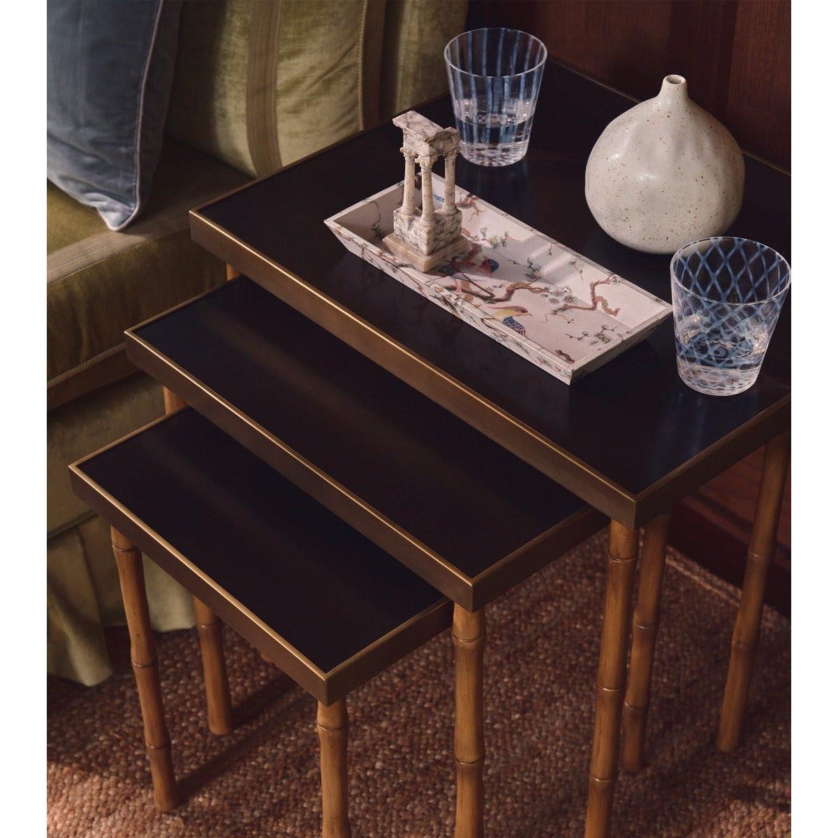 OKA, Adam Lippes X OKA Set of Three Avery Nesting Side Tables - Natural/Midnight Green, Side Tables, Brass/Metal/Wood
