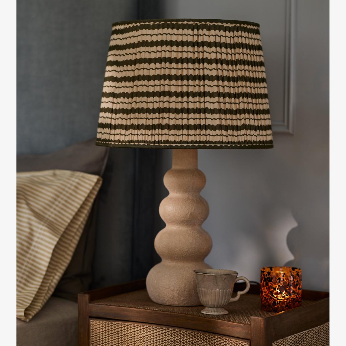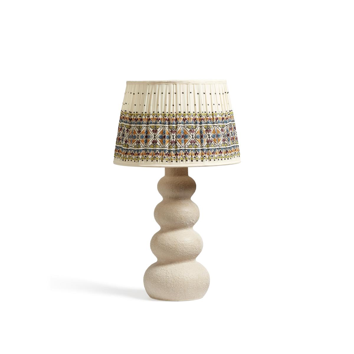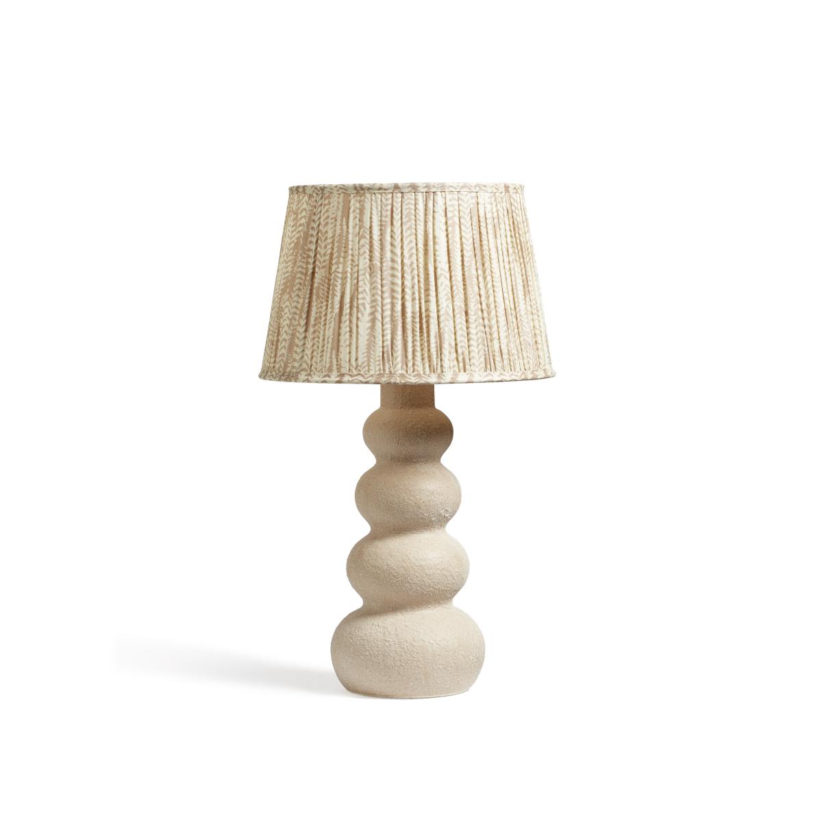 Our Adina Table Lamp has a pleasing concentric shape that fits perfectly into quiet luxury and modern minimalist interior schemes. Its textured body is hand painted and glazed in a creamy hue that will work well with many styles of lampshade.