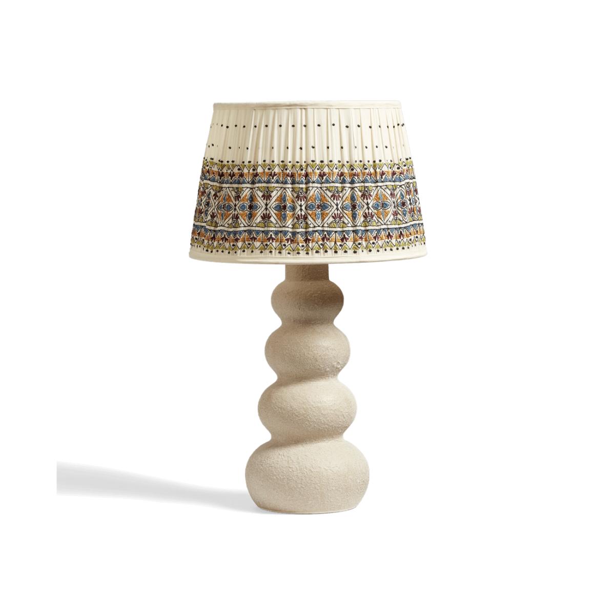 Our Adina Table Lamp has a pleasing concentric shape that fits perfectly into quiet luxury and modern minimalist interior schemes. Its textured body is hand painted and glazed in a creamy hue that will work well with many styles of lampshade.