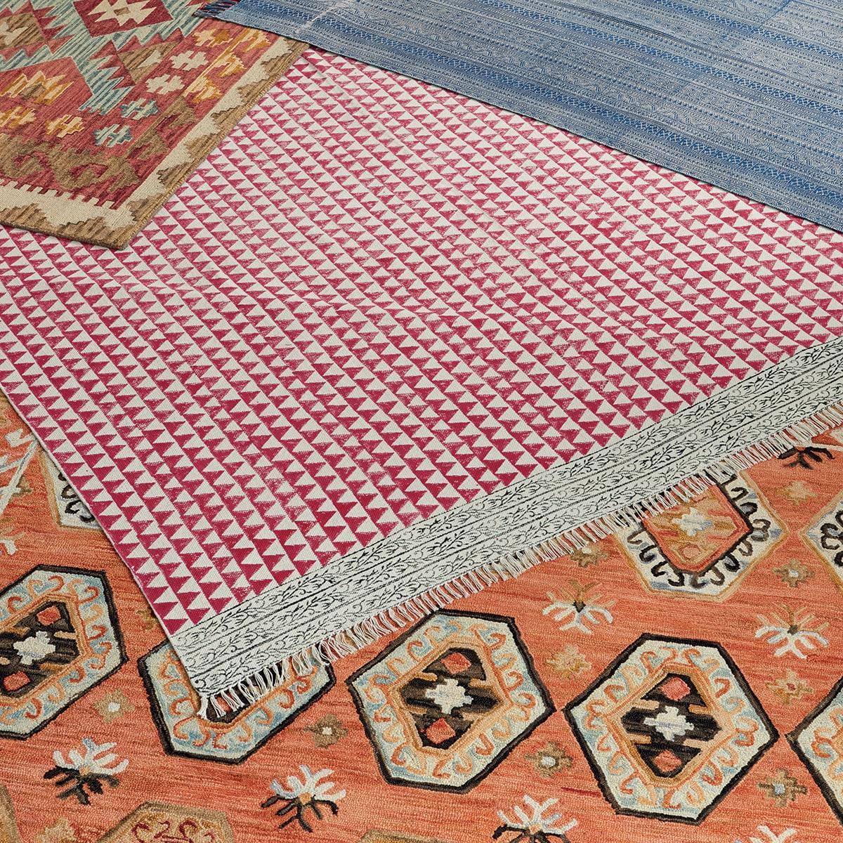 I love this Alanya rug for its vibrant, yet versatile pattern that can anchor a variety of interiors. Its cosy cotton and wool blend makes it both durable and comfortable underfoot, ideal for living rooms or bedrooms. It works particularly well in boho, eclectic, or traditional schemes, where its rich colours and geometric design can add visual interest without overwhelming the space. For styling, consider pairing it with neutral furniture to let the rug stand out or layer it over a plain rug in a patterned room to create depth. Practical tips include rotating it regularly to avoid uneven wear and pairing it with underfloor heating if used in colder areas to maximise comfort and longevity.