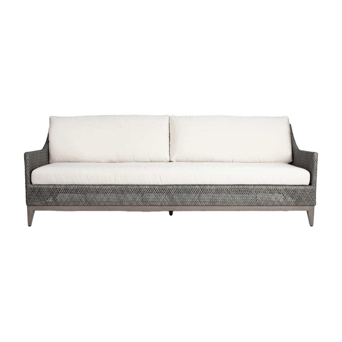 Lounging in style just got easier thanks to the Albert, which pairs a clean-lined silhouette with a deep, comfortable seat. Its tapered legs are crafted from teak – naturally weather resistant due to its high oil content, it’s the perfect material for an outdoor piece. An aluminium frame wrapped in resin rope has the added benefits of being resistant to rain and UV rays, so no rust or bleaching in the sun. The seat is topped with comfortable seat cushions covered in Sunbrella® fabric, a further protection against the elements.