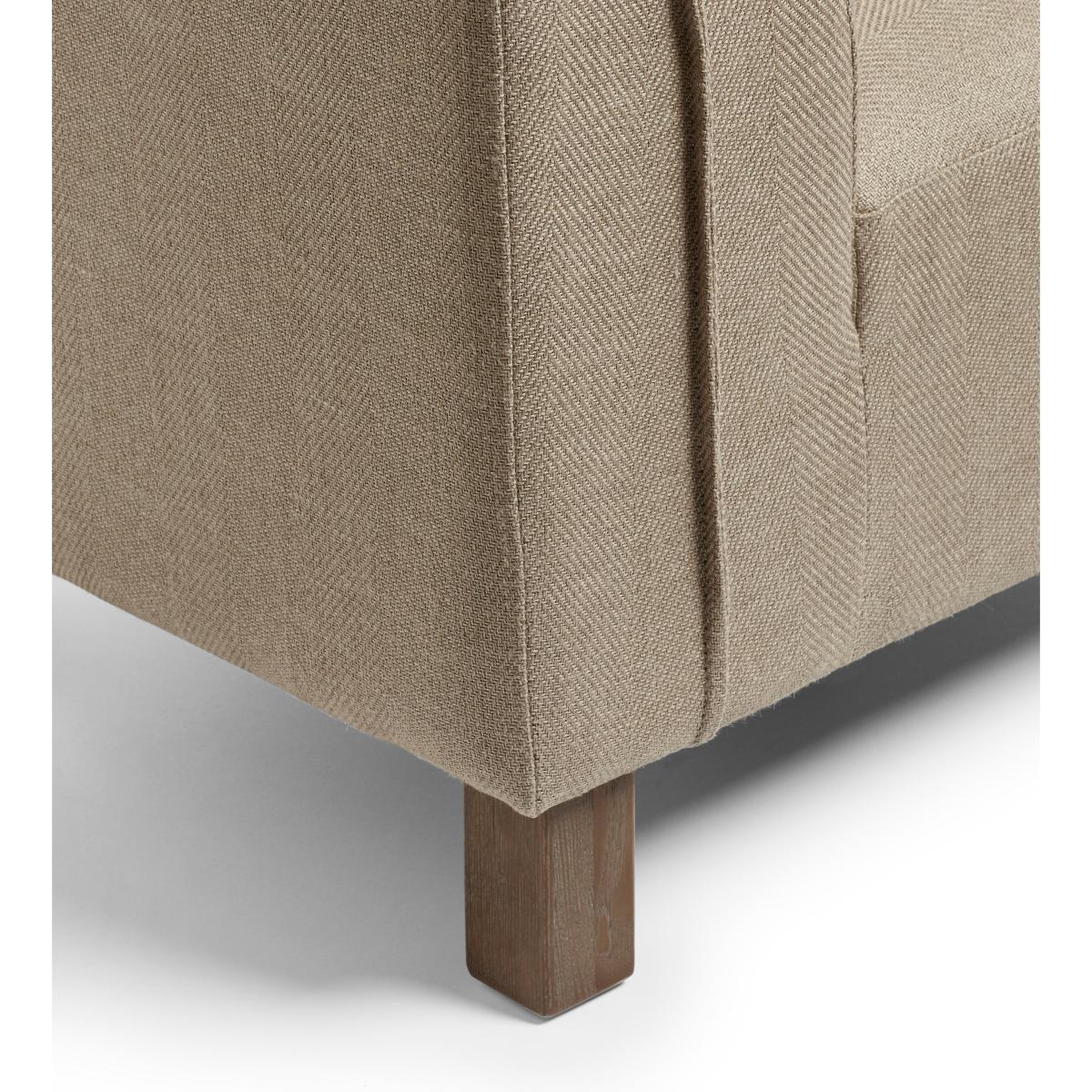 Named for its pillowy arms and cushioned backrest, Alora – a name of Latin origin meaning ‘dreamer’ – invites you to curl up and stay a while. Who wouldn’t? Complementing the armchair in the same collection, the Alora Modular Sofa offers the same comfort and style, albeit with the added flexibility of individual units. Mix and match to build your own – from armless and corner units to left- and right-arm sections, plus chaises – to create a configuration to suit your taste and space. The armless unit is sleek by itself or a sophisticated addition to a larger arrangement. All pieces feature deep, inviting seats upholstered in wide-herringbone fabric with height-adjustable feet in oak.