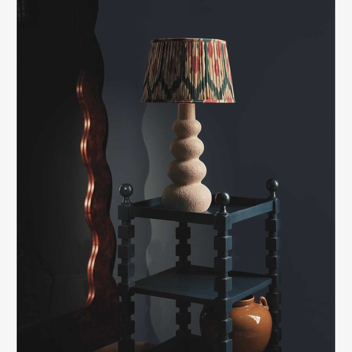 This lampshade offers a lovely mix of textures and colours that can elevate both contemporary and traditional interiors. I love how the pleated linen adds softness and sophistication, while the slate blue and gold tones bring a touch of elegance and warmth. It works especially well in cosy living rooms, bedrooms, or even in a more eclectic setting where it can act as a subtle statement piece. For styling tips, pair it with neutral surroundings to let the shade stand out, or coordinate it with navy or mustard accents for a cohesive look. It’s versatile enough to sit on a side table or a bedside lamp base, making it a practical yet stylish addition to various spaces.