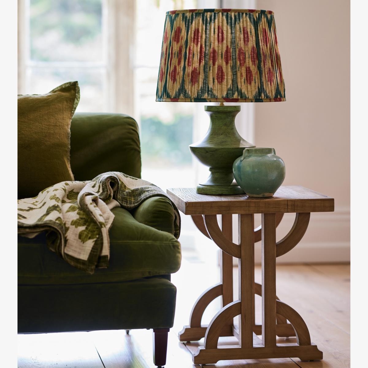 This OKA lampshade is a versatile choice that effortlessly elevates both classic and contemporary interiors. I love its combination of slate blue and gold, which brings a subtle touch of luxury and sophistication without being overpowering. Its pleated linen texture adds a soft, tactile element that complements natural materials like wood or stone. It works particularly well in cosy living rooms or bedrooms, especially when styling with muted, earthy tones or layered textiles. Practical tips include pairing it with a matching or complementary table lamp base to create a cohesive look, and positioning it to bring warm, ambient light to reading nooks or side tables. Its elegant yet understated design makes it a reliable workhorse for adding understated elegance to various spaces.