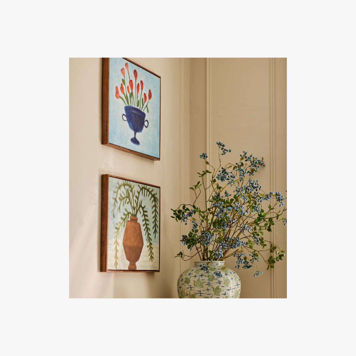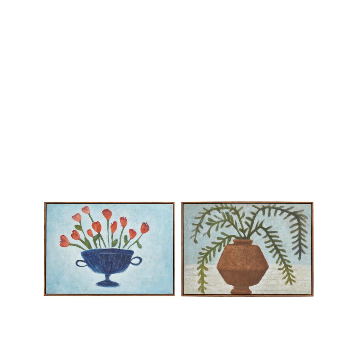 Add colour and interest to your home with our Anthodis Hand-Painted Wall Art. The set of two features hand-painted artworks of abstract flowers in vases set within natural wood frames. The textured surface is achieved by layers of paint hand-applied by expert craftspeople.