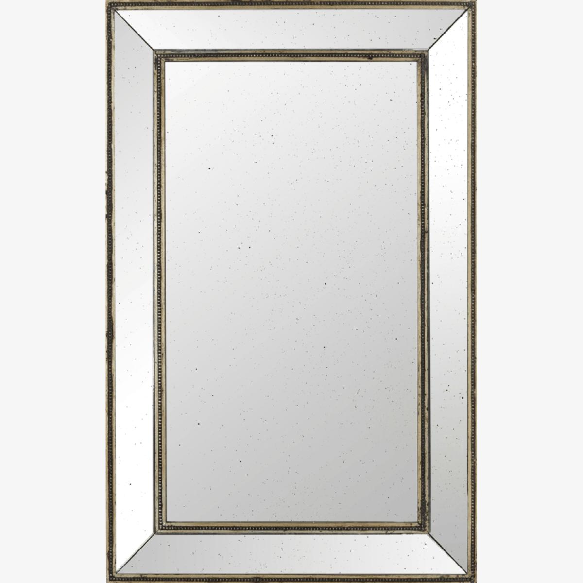 A beautiful antique-finish mirror, our Anotoine design features a bevelled-edge frame and beaded rim detail. The mirror's metal frame has an intentionally distressed bronze finish, which makes it a great fit for a vintage-inspired dressing room.