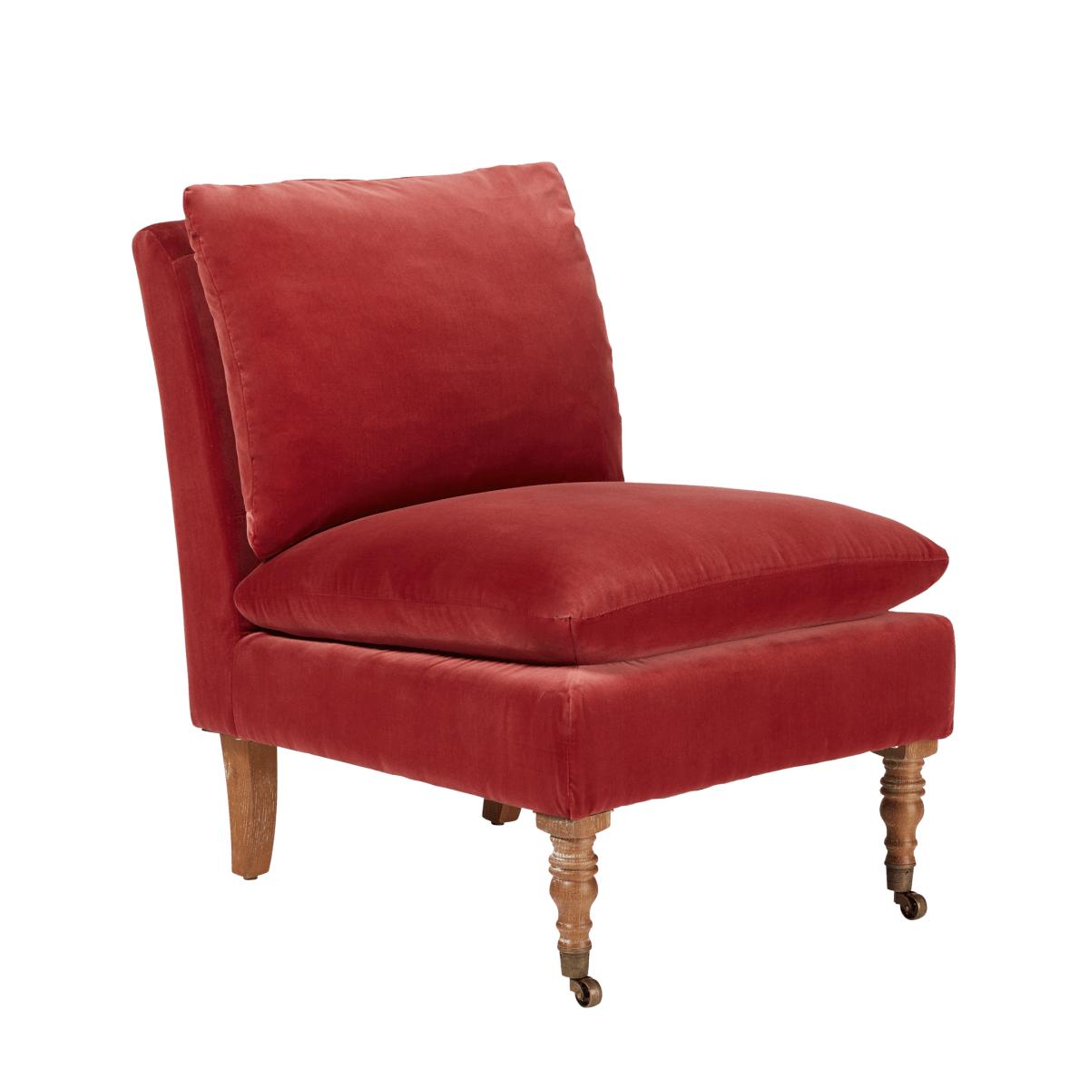 OKA, Apadana Velvet Armless Chair - Blood Orange, Armchairs, Velvet, Plain