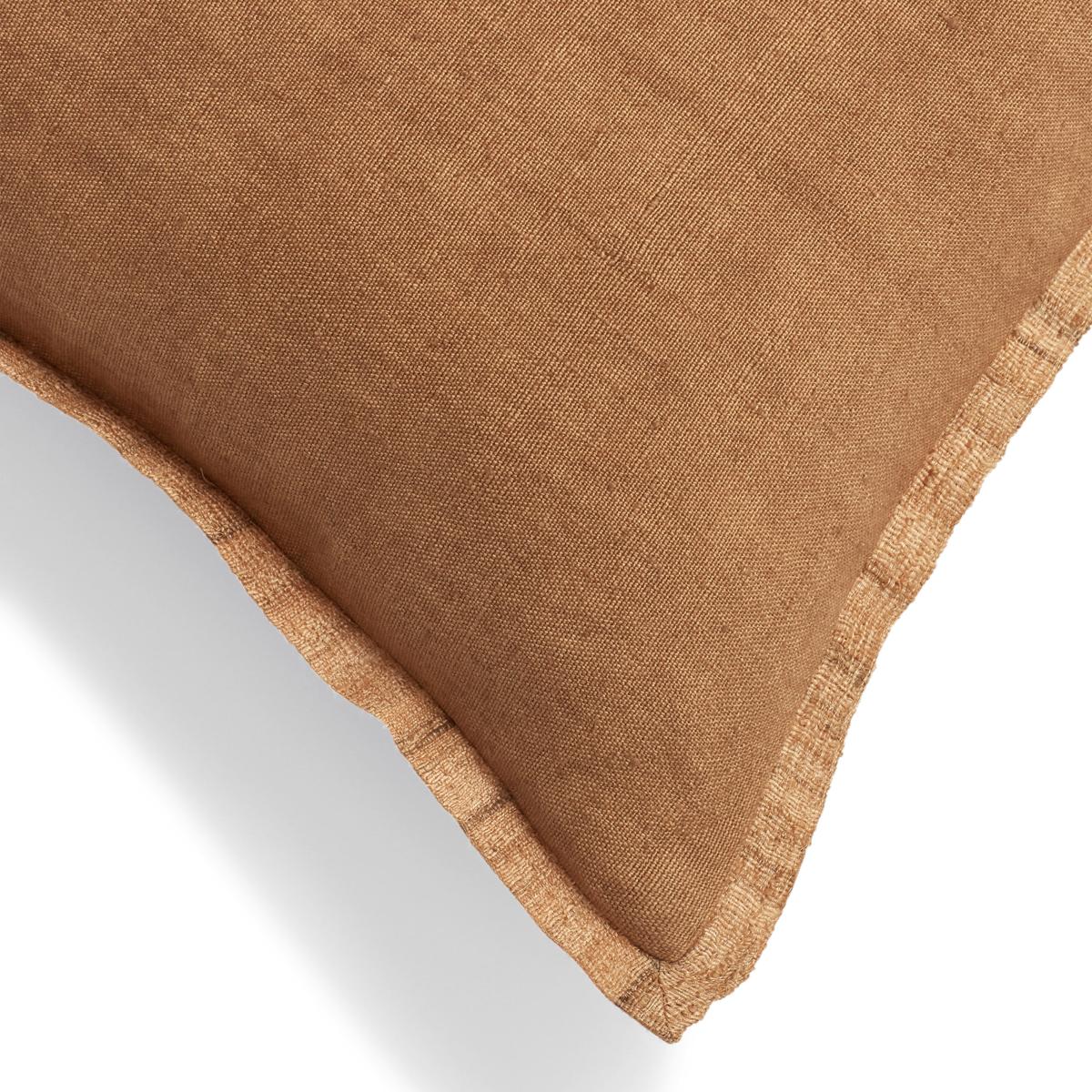 Our Archibald Cushion Cover makes for the perfect addition to a cushion collection. Its plain linen base is handwoven and dyed a deep terracotta hue, finished with a silk flange for extra interest. Due to the artisanal techniques used, each piece will have individual characteristics which add to their charm.