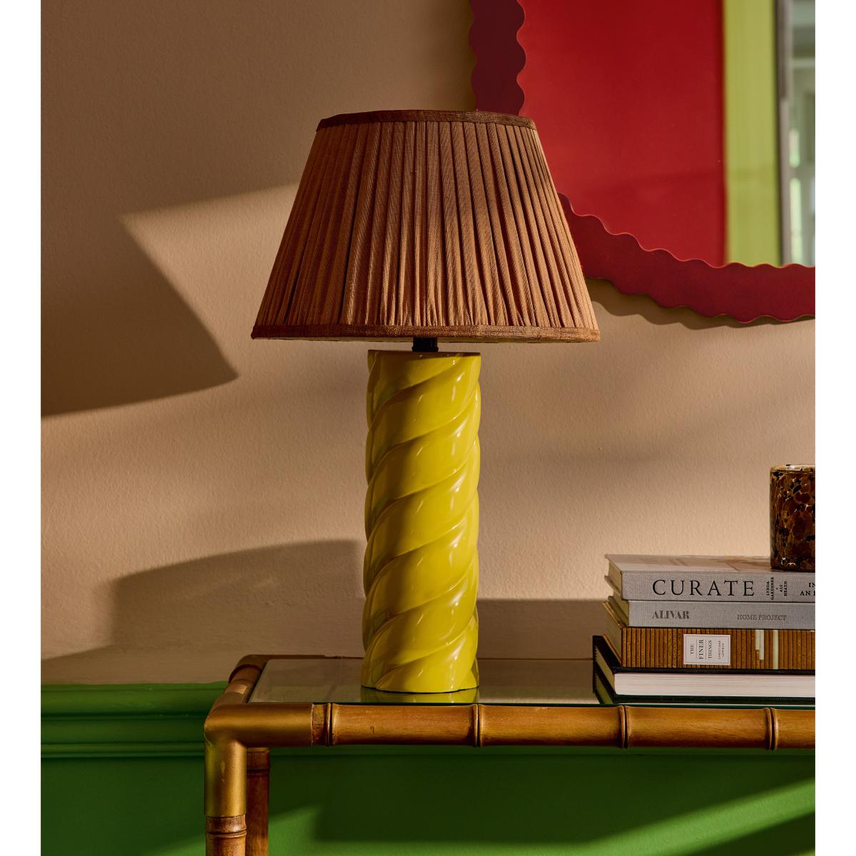 This lampshade is a great way to add a touch of softness and warmth to both classic and contemporary interiors. I love its apricot tone, which brings a subtle colour pop without overpowering the space. The pleated linen adds texture, making it ideal for layered, tactile schemes-think cosy living rooms, bedrooms, or even relaxed home offices. For practical styling, pair it with a cast-iron or wooden base for a balanced look, and place it where it can diffuse light softly, creating a welcoming atmosphere. Its neutral yet slightly coloured palette makes it versatile, so it works well with neutral fabrics, natural woods, or muted pastels.