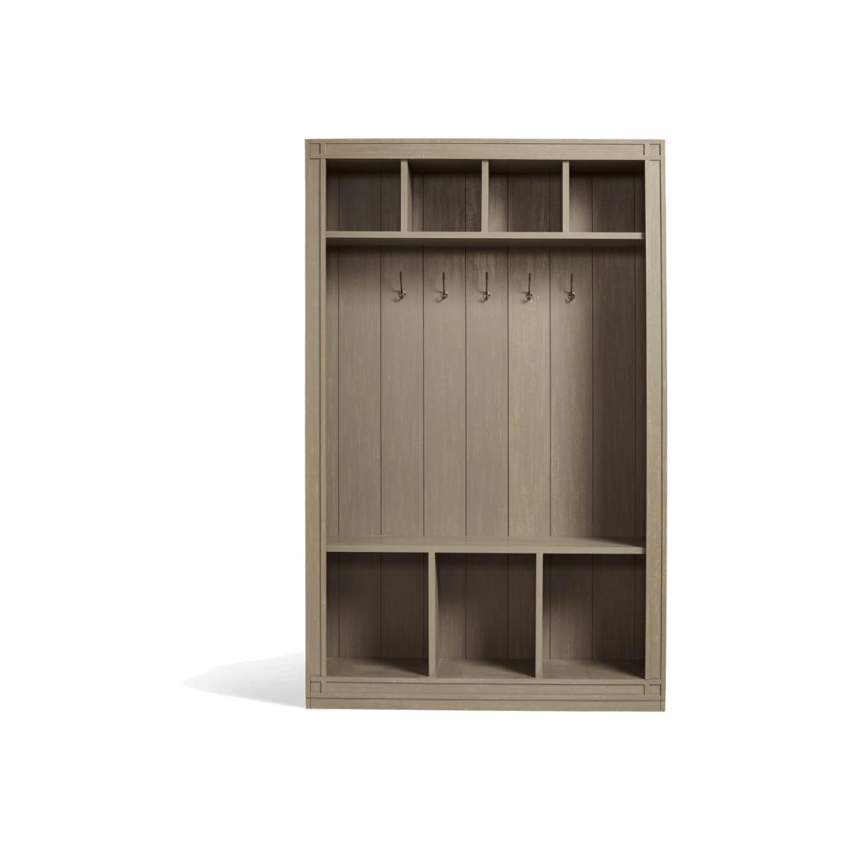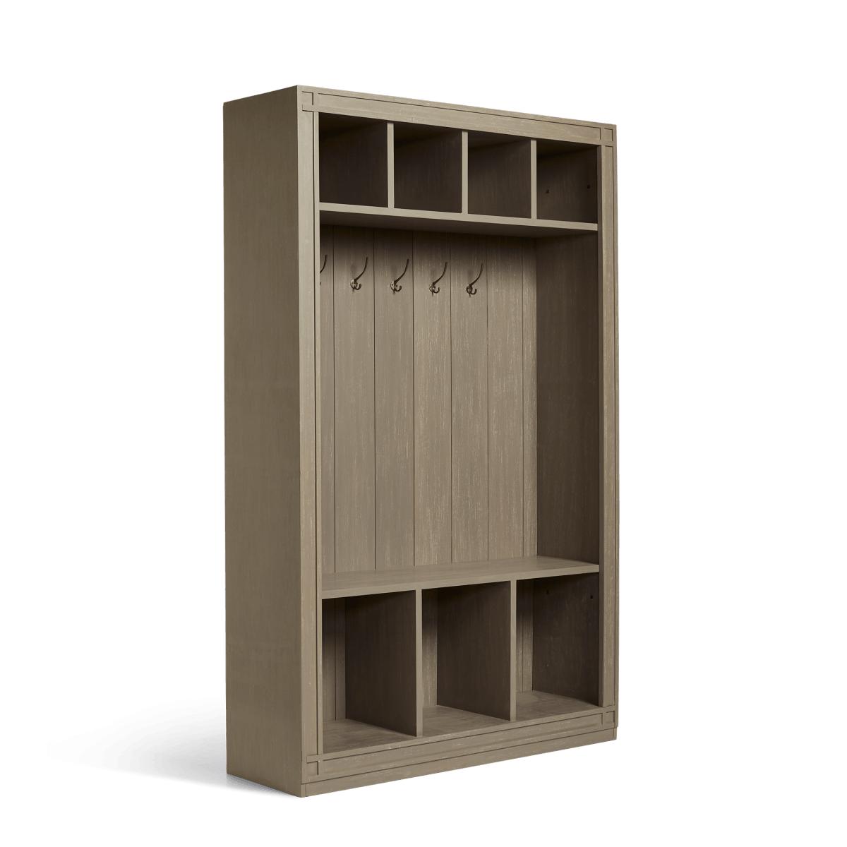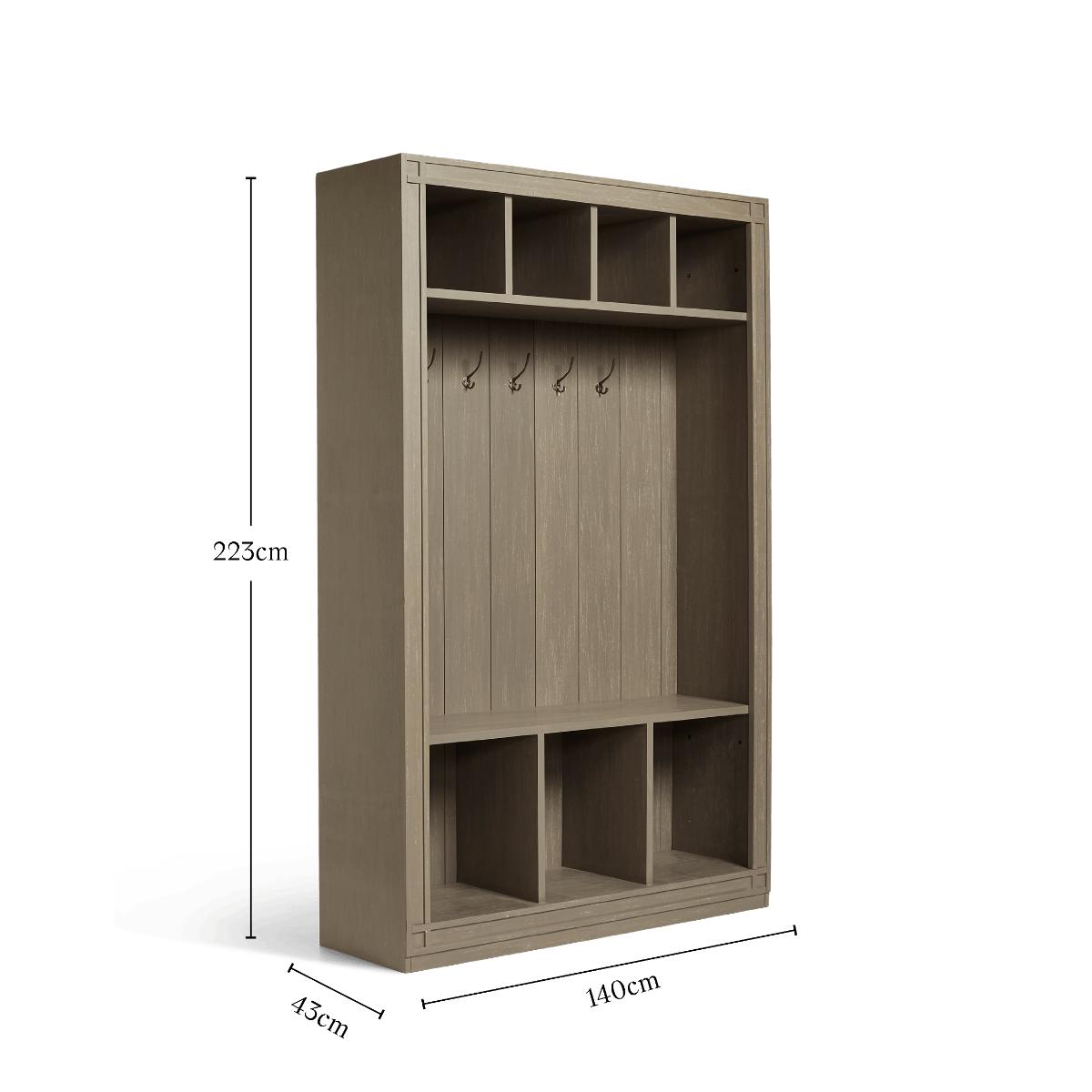 Our Ashmolean Range is inspired by classical architectural lines with minimal detailing, and has a chameleon-like ability to fit into both modern and traditional schemes. This Hallway Storage Unit is one of the most practical pieces in our collection. It's complete with seven cubbyholes that you can use for boots, baskets or anything else, a bench that's the perfect spot for sitting to tie up your shoes, and five attachable hooks that, if you choose to use them, offer a handy coat rack.