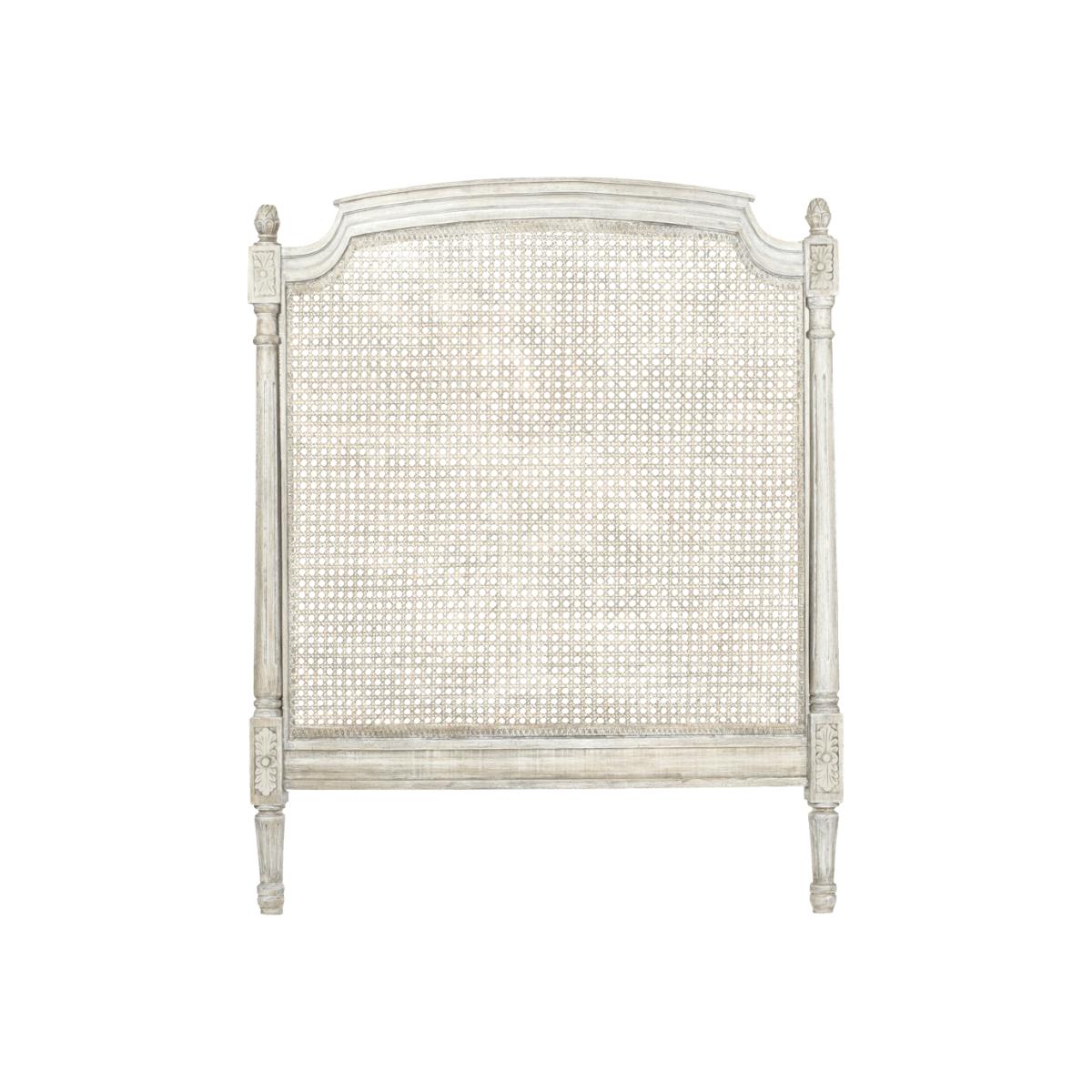 Restrained Scandinavian styling makes this headboard an alternative to more traditional upholstered designs. With its muted flannel-grey finish, this carved and caned headboard provides a quick update for a single divan bed, with no fixing required – simply stand the headboard between the bed and the wall.