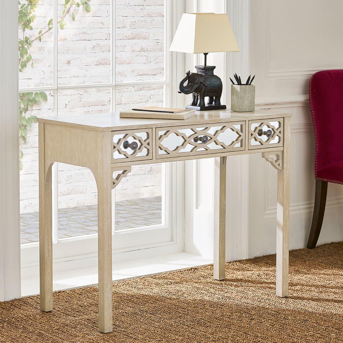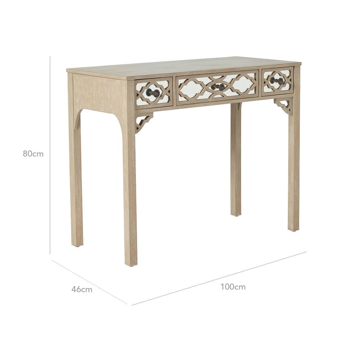 The word "Avezzano" may have you daydreaming of an Italian idyll, and you would be right; this elegant dressing table takes its name from the tranquil city in the Abruzzo region, where it certainly wouldn't look out of place. The Avezzano Dressing Table is finished in a natural tone that balances out its glamorous mirror-panelled detailing perfectly. This piece would be a practical and eye-catching addition to your hallway – the ideal welcome home.