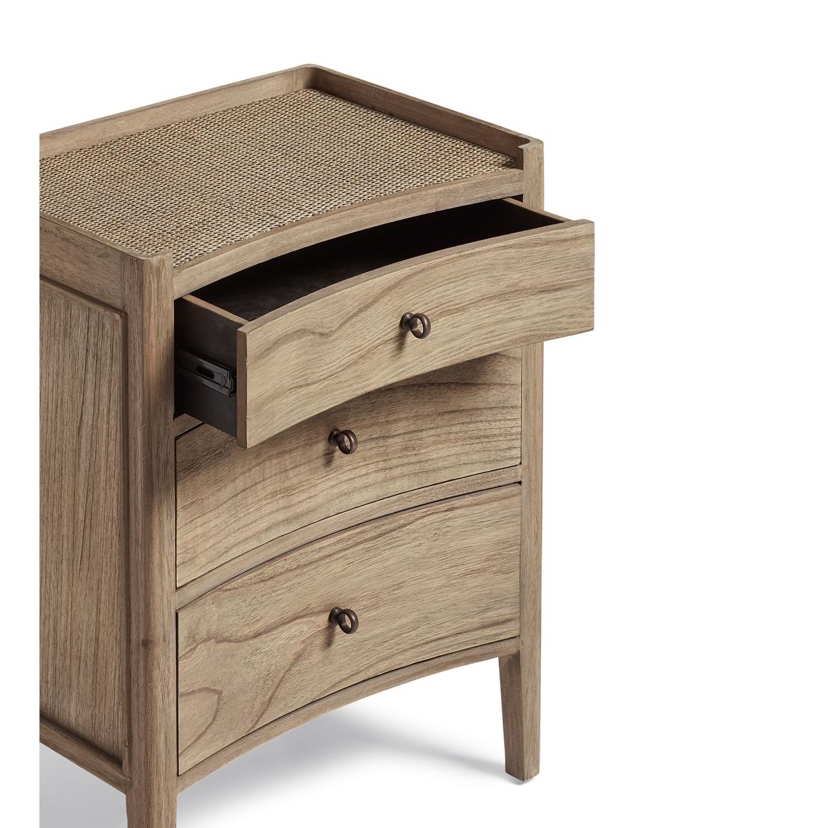 Named after the islands of Balabac in the Philippines, this unusual design - with its gently concave drawers - brings global appeal to your scheme. Its minimal profile and natural warm-wood finish is complemented by a raised rattan top, which adds texture.