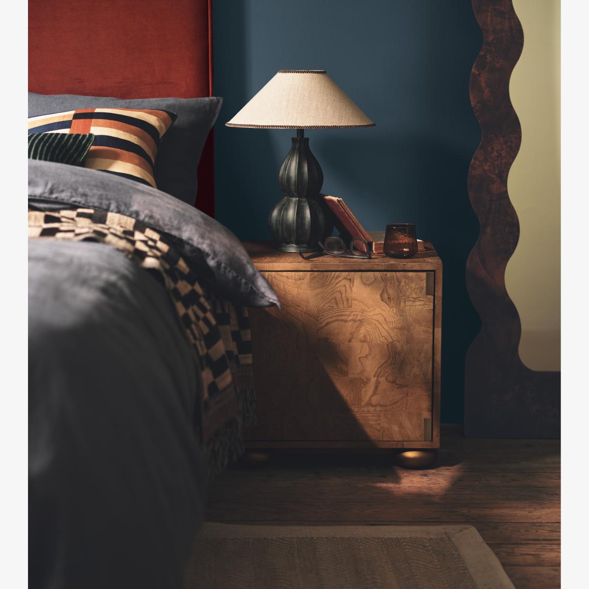 I love the OKA Bartholomew table lamp for its rich antique green hue, which adds a touch of sophistication and warmth to various interiors. It works particularly well in traditional or transitional settings, where its classic shape can complement both vintage and contemporary furniture. For practical styling, consider placing it on a bedside table or a sideboard to create balanced lighting with a cosy ambiance. Pair it with textiles in neutral or earthy tones to enhance its timeless appeal, and keep the surrounding décor minimalist to let the lamp be a statement piece. Its versatile colour and elegant silhouette make it a useful and stylish addition to both living rooms and bedrooms.