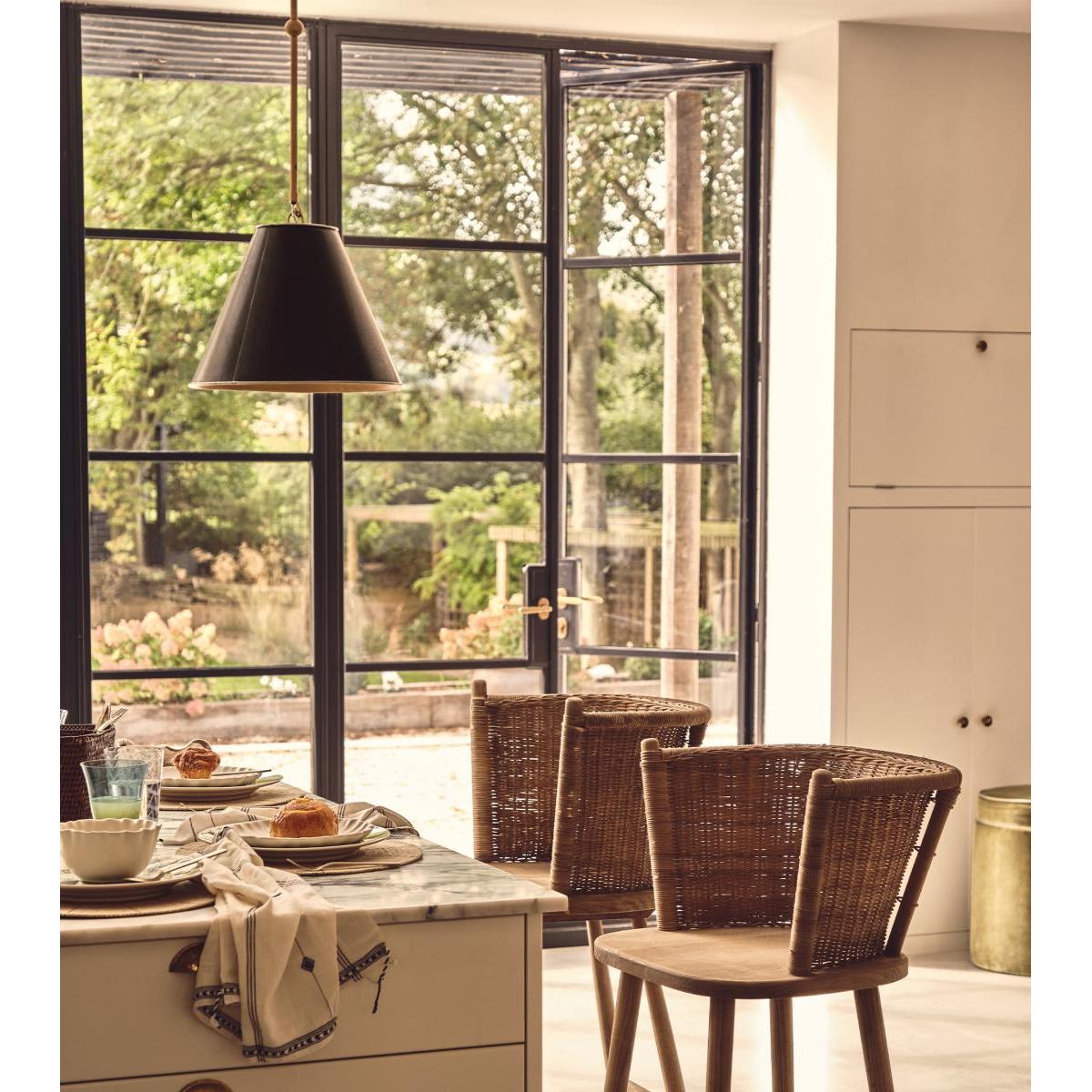 I really like the OKA Benedict pendant - it's a versatile piece that works particularly well in contemporary or eclectic interiors. The petrol colour adds a modern and unexpected pop of hue, making it a great focal point in a minimalist space or over a kitchen island or dining table. Because of its understated shape and mixed fabric materials, it’s easy to style alongside natural textures like wood or brass, creating a balanced and inviting look. When styling, I’d suggest pairing it with other subtle metallic accents or soft textiles to enhance its sophisticated yet approachable vibe, and make sure the pendant is hung at an appropriate height to deliver both task and ambient lighting effectively.