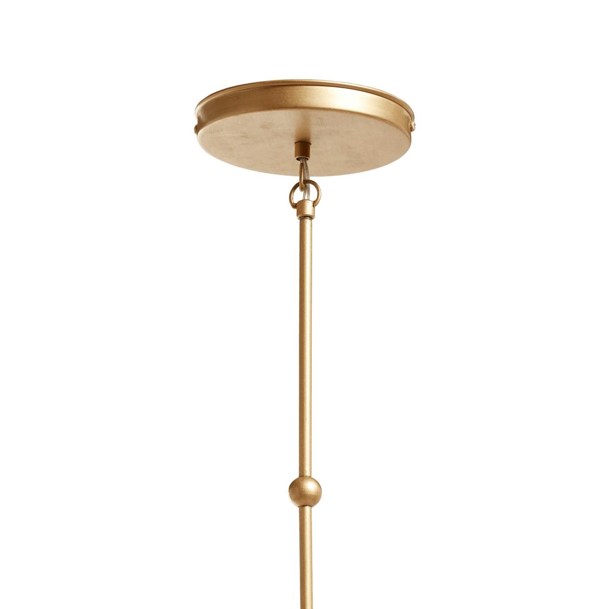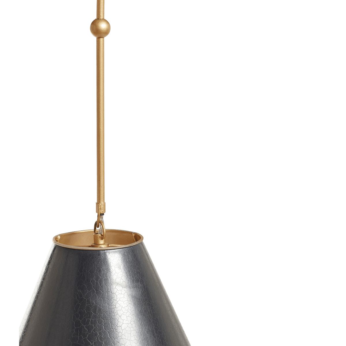 Benedict is an example of discerning sophistication. Its metal cone shade is hand painted Petrol blue with a crackle finish on the outside, contrasted by smooth, gold tones on the inside to match the golden metal support that it hangs from. The piece is finished with spherical metal details for an extra touch of individuality.