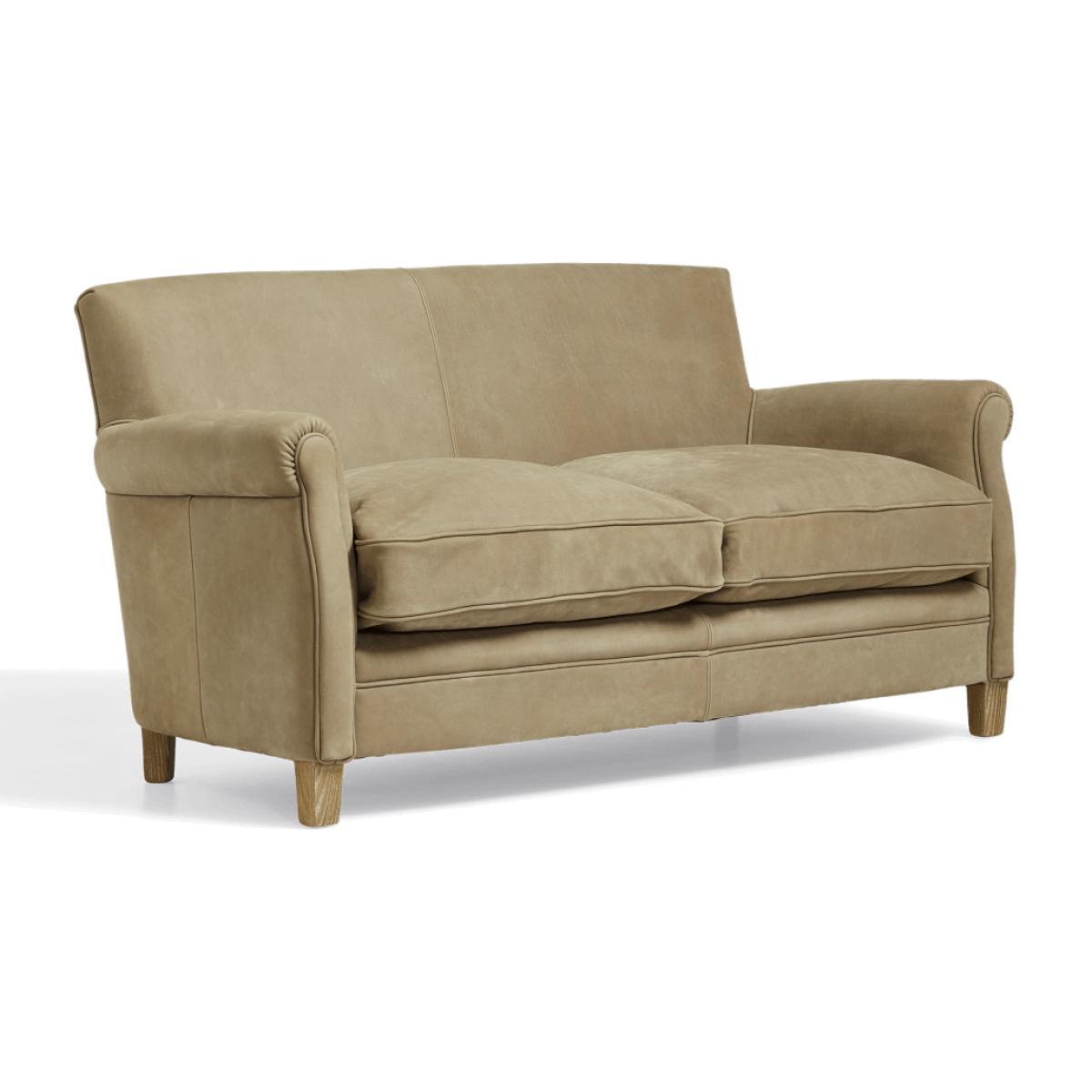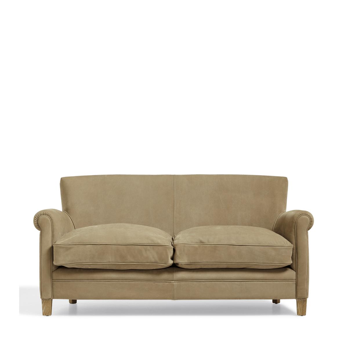 OKA, Berstone Leather 2-Seater Sofa - Pebble Grey, Sofas, Leather, Plain