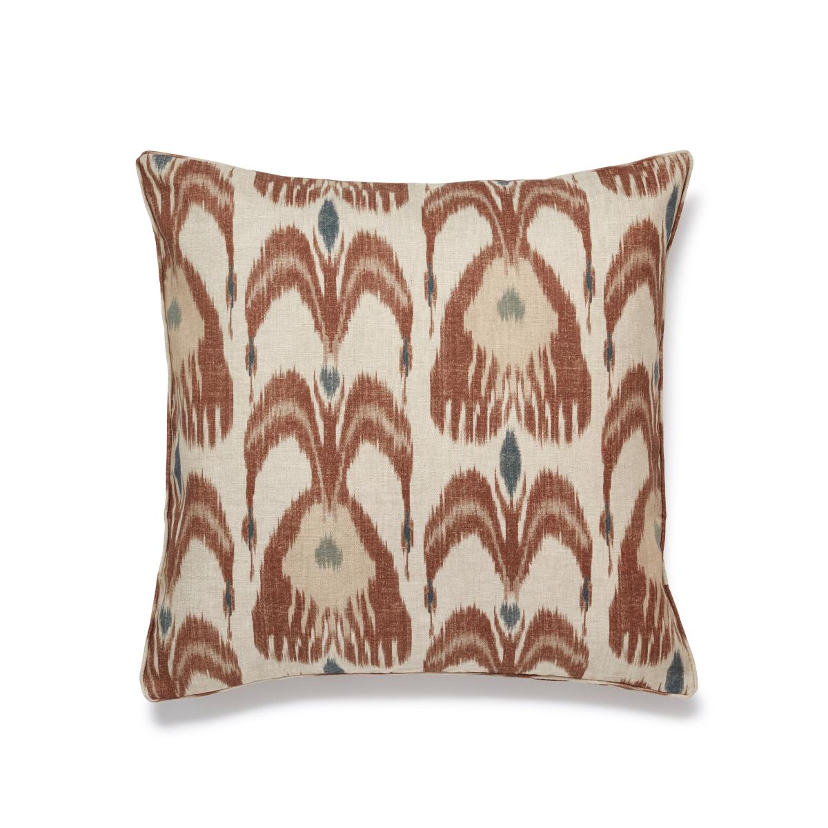 The pattern of our Bukhara cushion Cover is digitally printed in the style of a typical Ikat design. Ikat is an ancient dyeing technique that originated in Indonesia and requires the skill of masterful artisans. This cushion cover is made in the UK, with the muted rust-coloured wave-like pattern being digitally printed onto a linen base. The Tabac tone has an organic feeling that embodies hues of natural earth, ideal for lovers of neutrals.