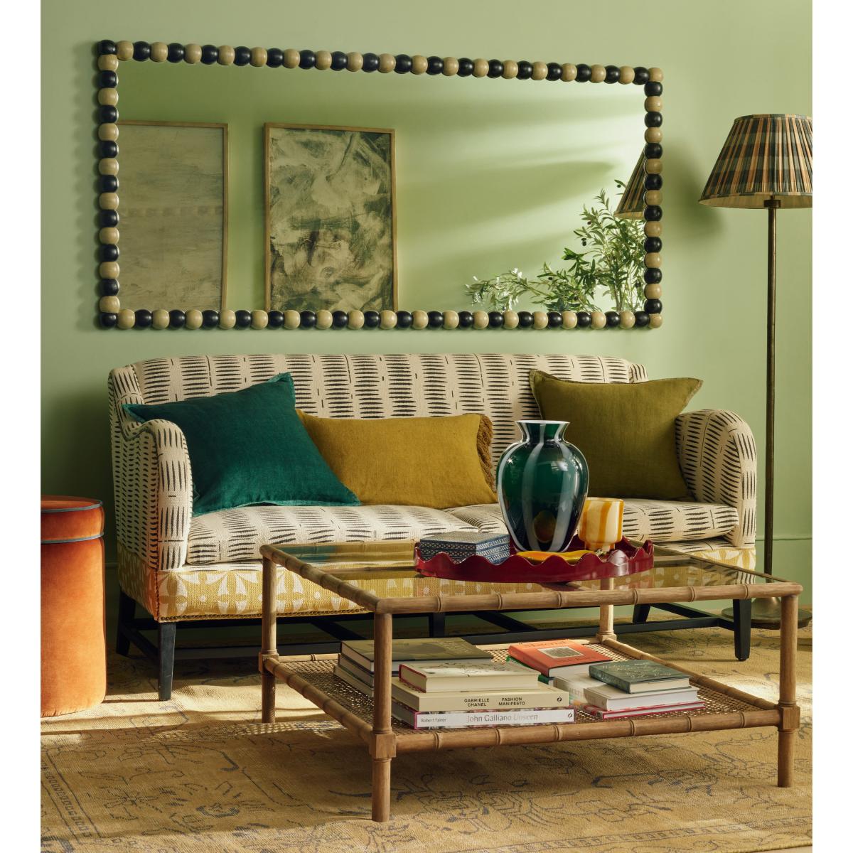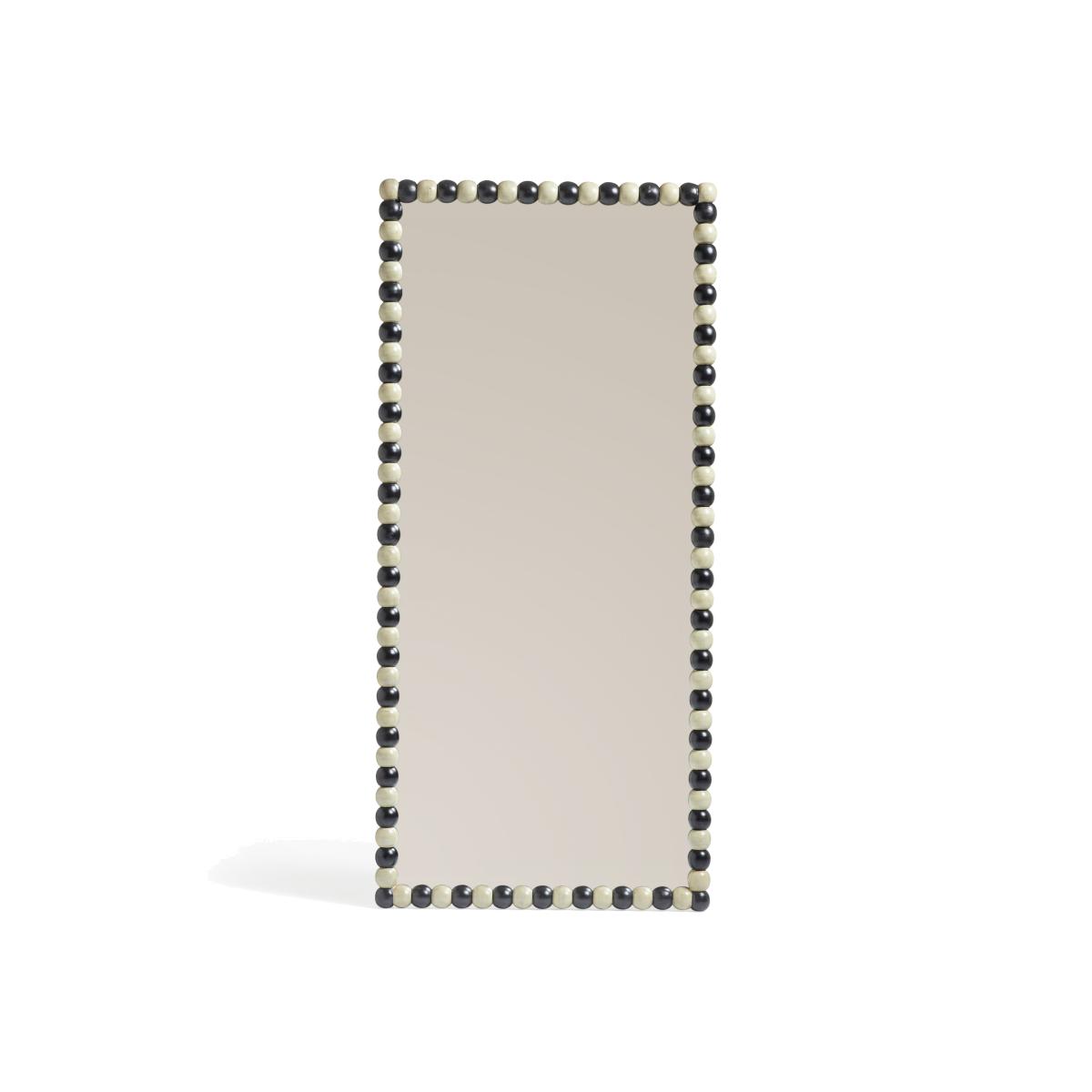 Our Bobina Mirrors are inspired by bobbin furniture - otherwise known as spool furniture - of the late 17th century. This style had legs that were generally lathe-turned into ornamental shapes in order to make a feature of them. We have expanded our best-selling range to include this oversized, statement floor-standing mirror: drawing on the bobbin characteristic, its solid mango wood frame ishand carved into pleasing spherical shapes,then hand painted contrasting black and vellum hues and finished with an antiqued, rubbed effect. Due to the artisanal techniques used, each piece will haveindividual characteristics that add to their charm.