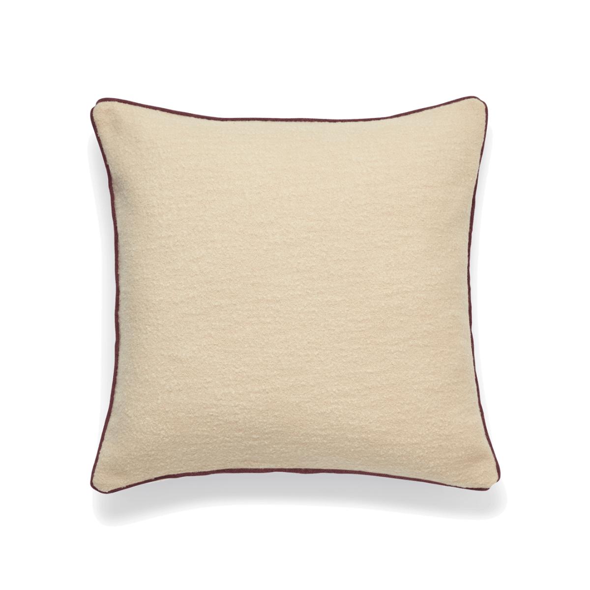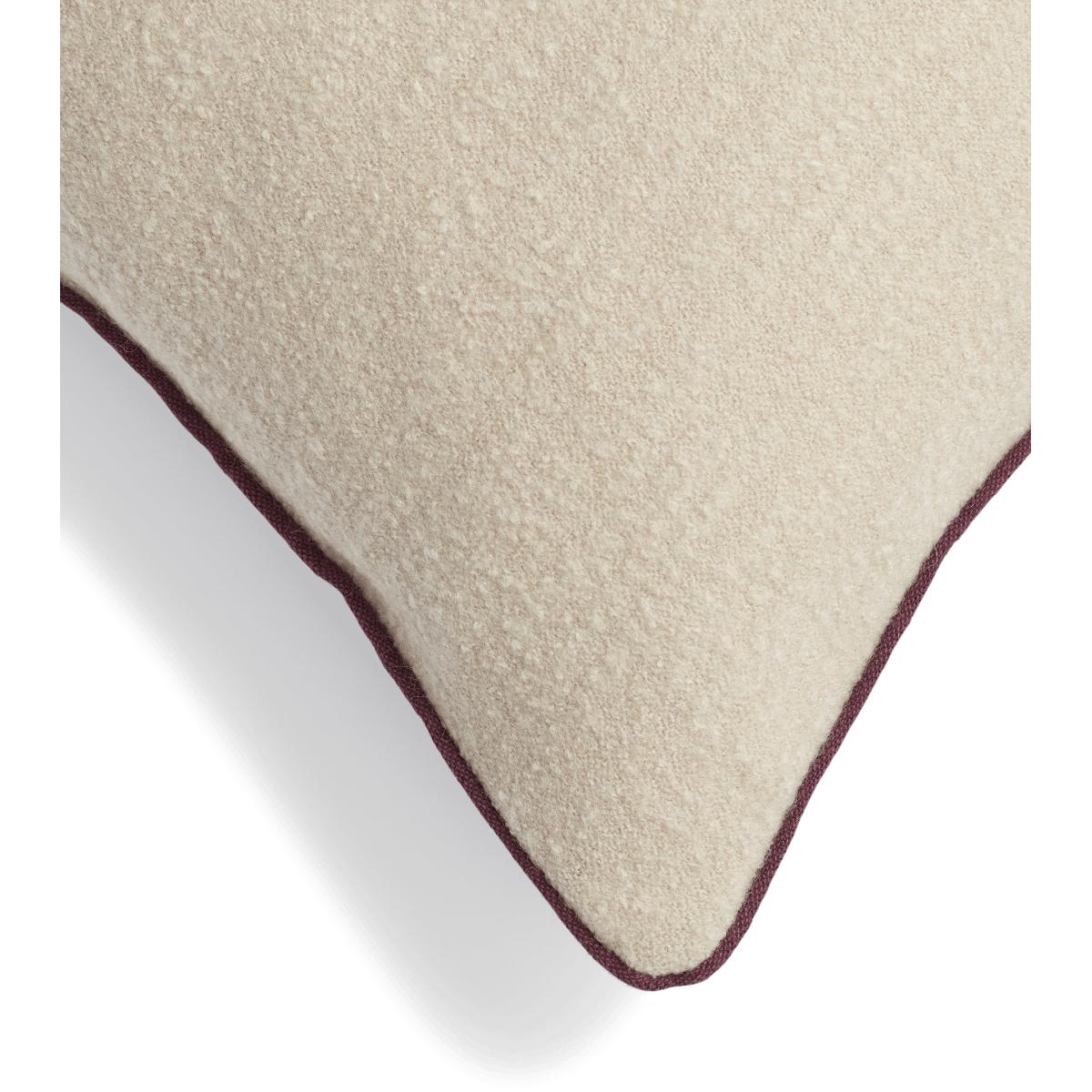 Our Bonnie Cushion Cover is a story with two sides. On its front is a cream-coloured woven-wool bouclé design with a dense, looped texture that is both soft and durable. The wool is sourced from Australia – making it incredibly high quality – before being woven in Scotland. The reverse is woven from a blend of linen and cotton, dyed a deep damson purple colour that is inspired by the natural splendour of the Scottish Highlands. The weaving process takes approximately six to eight weeks from handling the spun yarn to completion.