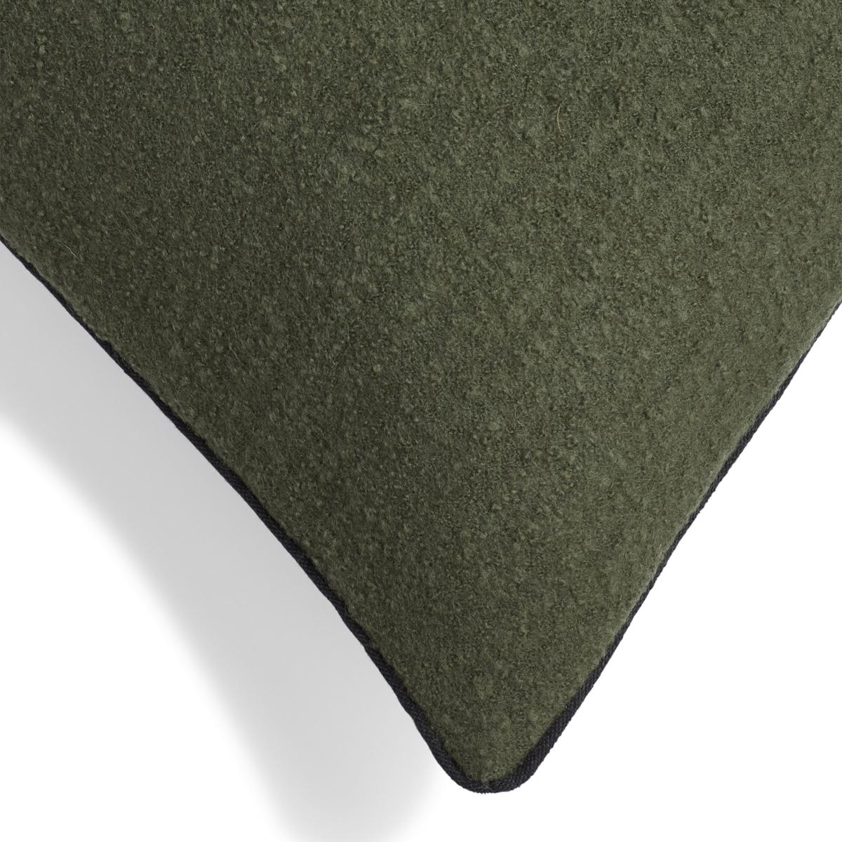 Our Bonnie Cushion Cover is a story with two sides. On its front is a cream-coloured woven-wool bouclé design with a dense, looped texture that is both soft and durable. The wool is sourced from Australia -making it incredibly high quality - before being woven in Scotland. The reverse is woven from a blend of linen and cotton, dyed a mossy green colour that is inspired by the natural splendour of the Scottish Highlands. The weaving process takes approximately six to eight weeks from handling the spun yarn to completion.