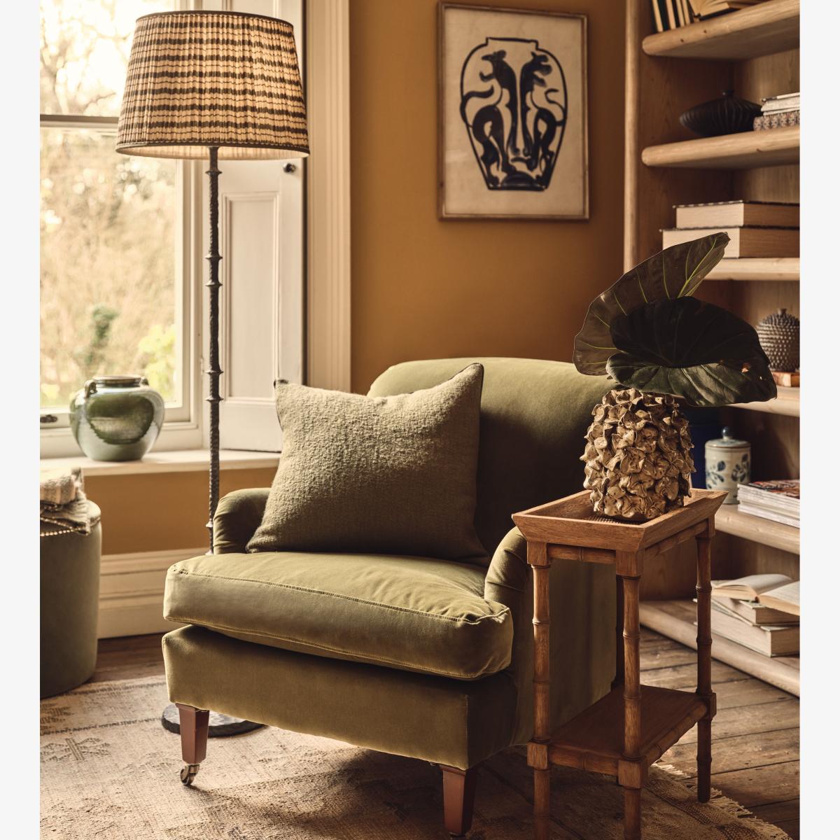 I love this cushion cover for its versatile colour palette and understated elegance. The green and cream tones make it an ideal addition to both neutral and earthy interiors, adding a subtle touch of colour without dominating the space. It works especially well in cosy, traditional schemes or relaxed cottage-style interiors, but can also bring a layer of sophistication to more contemporary setups. When styling, consider pairing it with textured throws or other cushions in complementary shades to enhance its tactile appeal. Practical tip: it’s perfect for adding a dash of colour to your sofa or armchair, making your seating area feel inviting and well-curated.