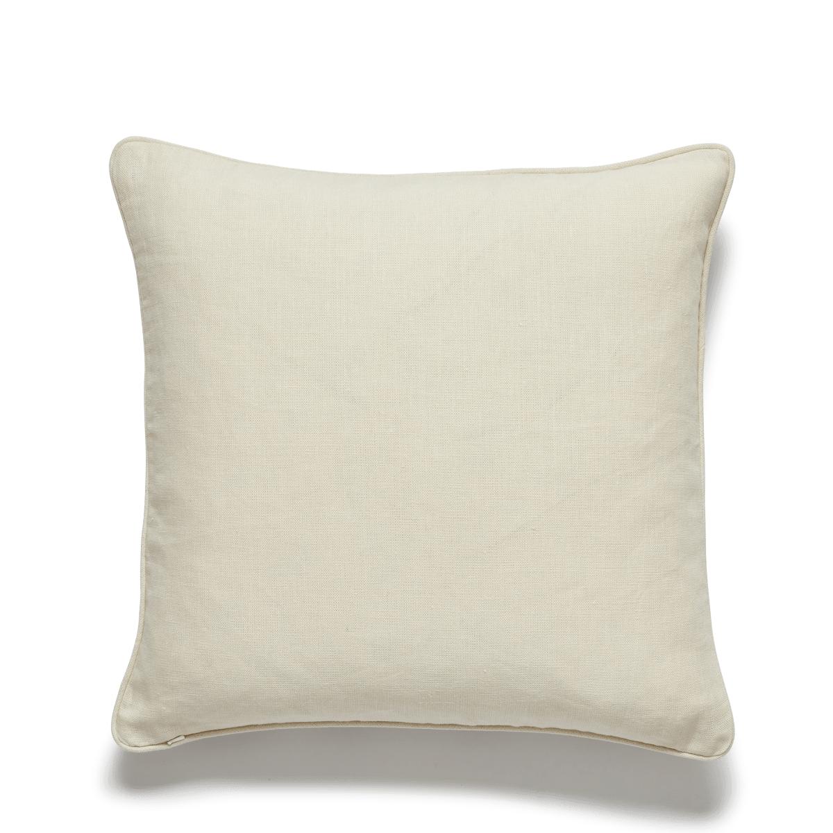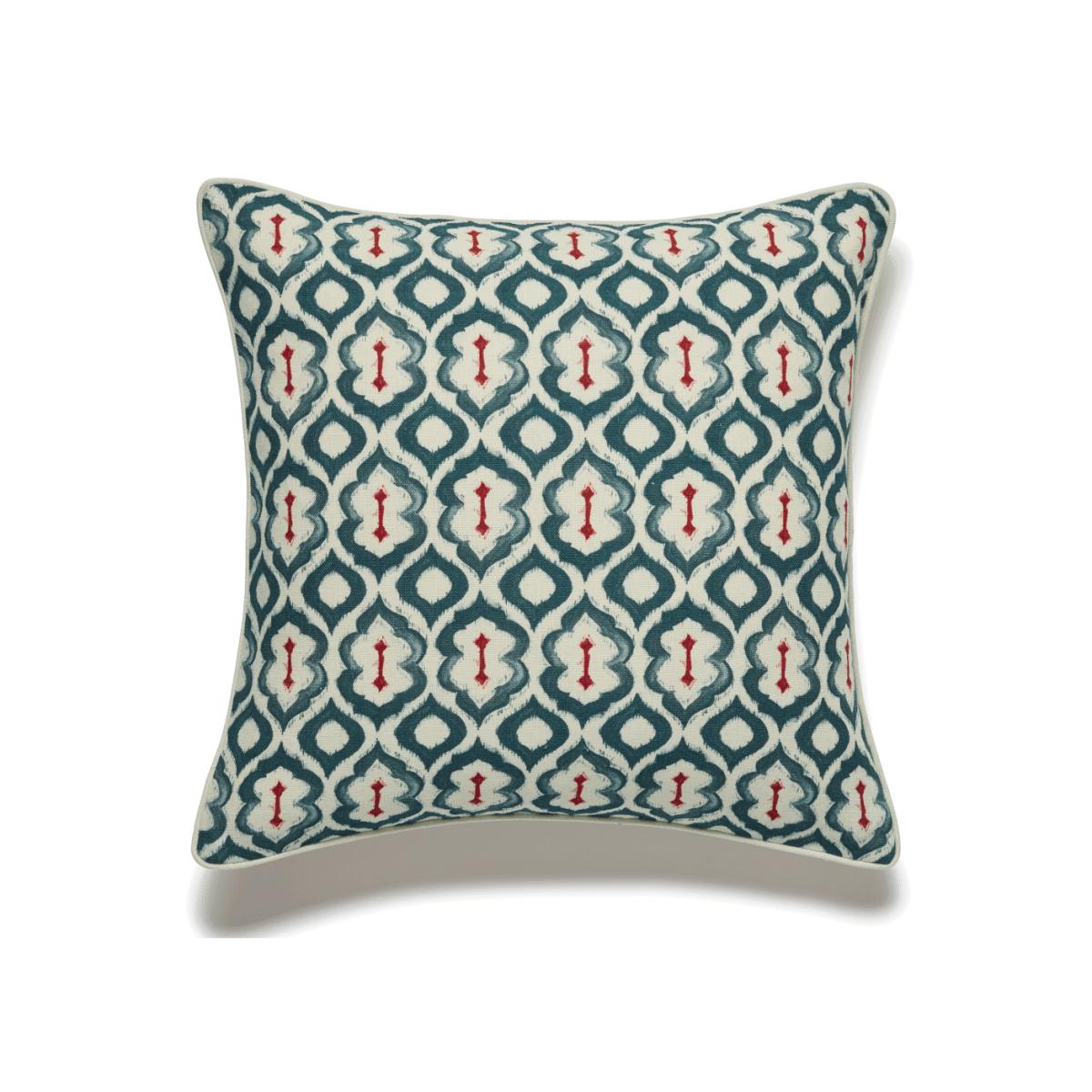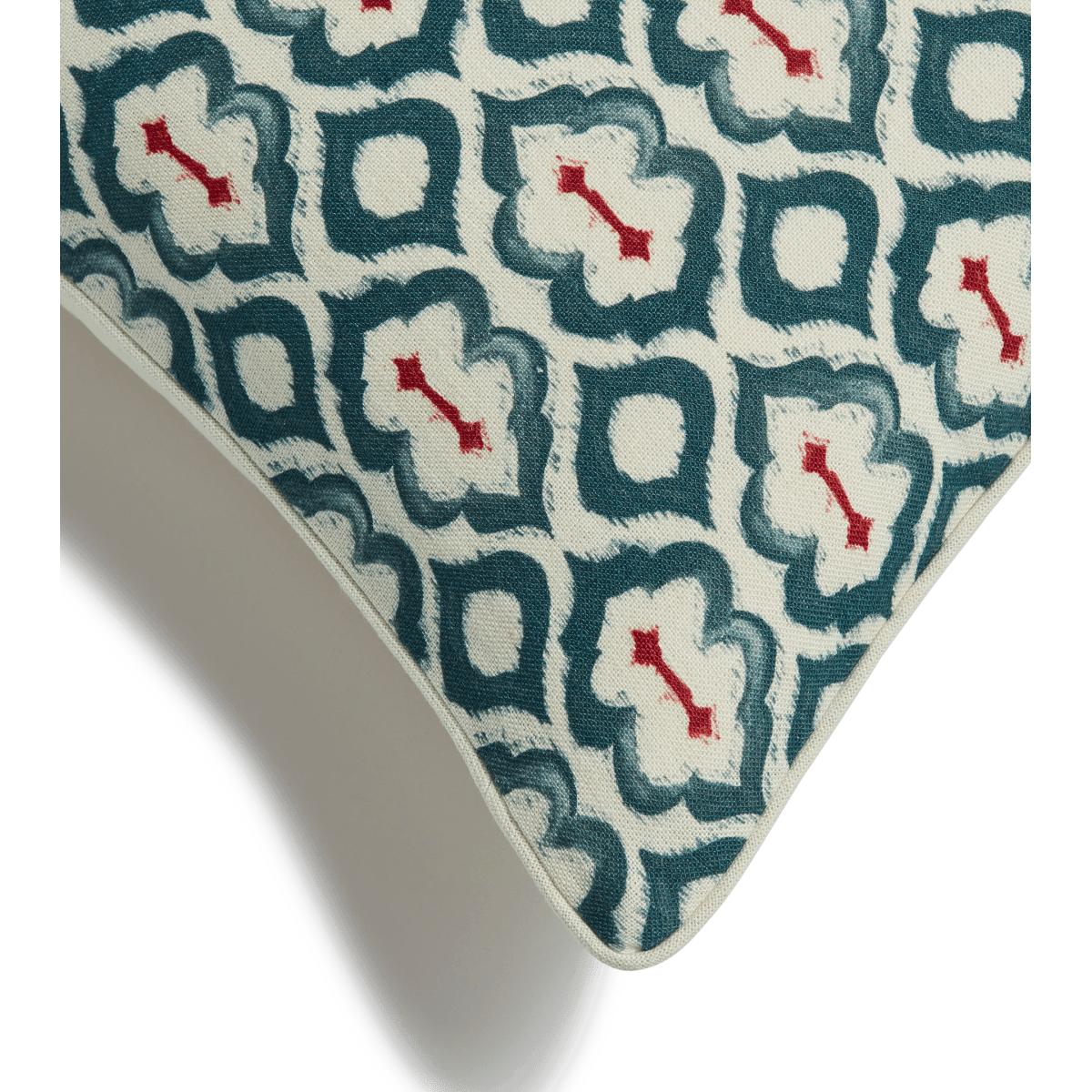 The heavy linen used for our Borrayo Cushion Covers has a quality feel that lends the perfect base for the artwork of our Ikat-style design. Ikat is an ancient dyeing technique that originates in Indonesia requiring the skill of masterful artisans. We have digitally printed the pattern onto the linen so that all the character of the paintwork is portrayed, from the pattern itself to the soft painterly lines that blend from the blue into the white. Our range is named Borrayo for this very reason – a play on the Portuguese word for ‘blur’, which is a distinctive quality of Ikat designs. This version features the most intricate of the designs, with arrowlike red lines at the centre of each curving shape.