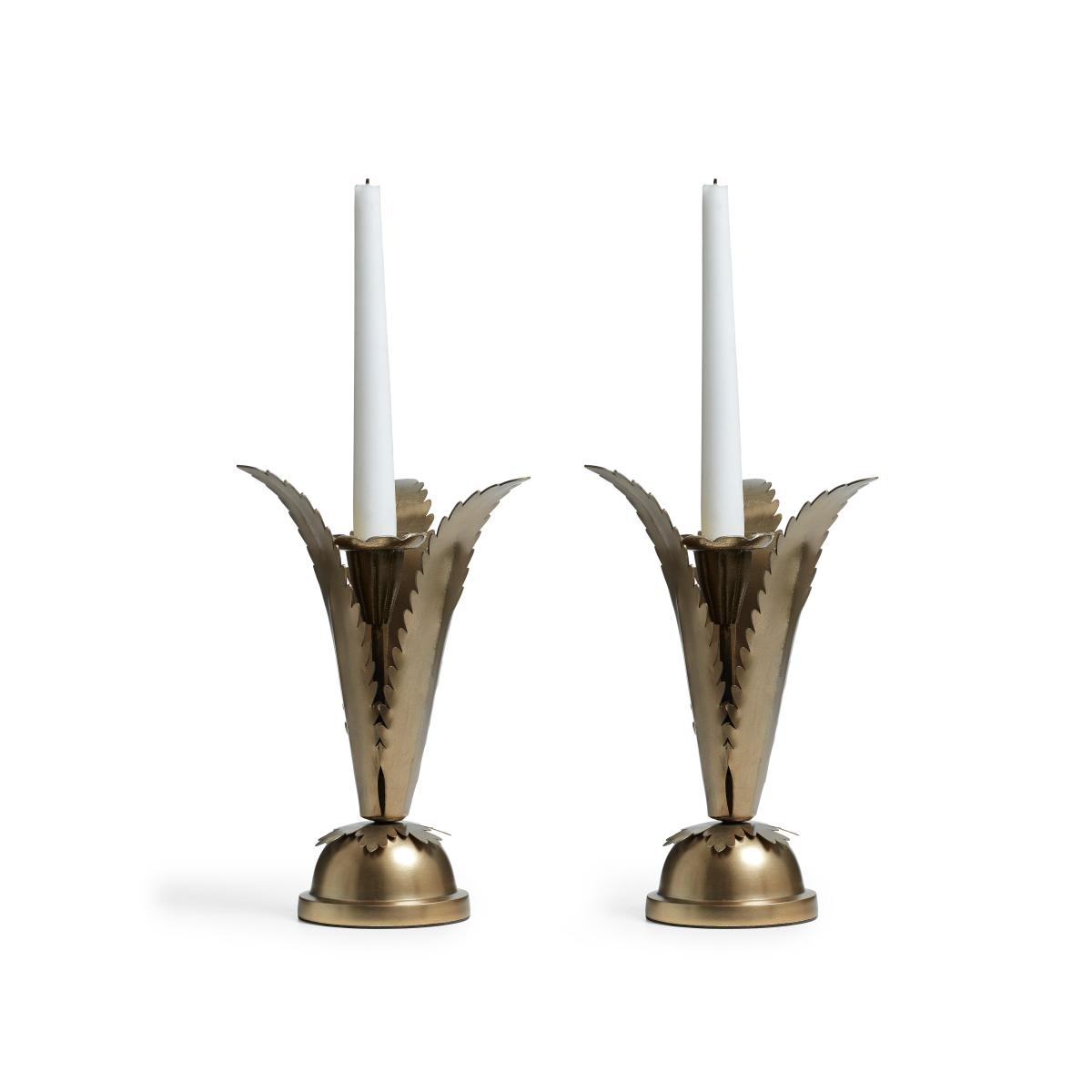 Add a touch of luxury to your tablescape with this set of two Brialen Candle Holders, each with a delicate leaf design inspired by waterlilies. Designed to hold tapers, they’re made from cast brass for a weighty feel in the hand.