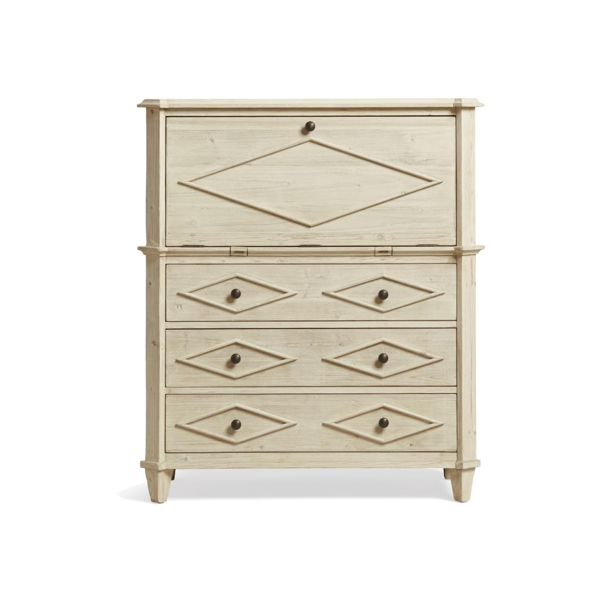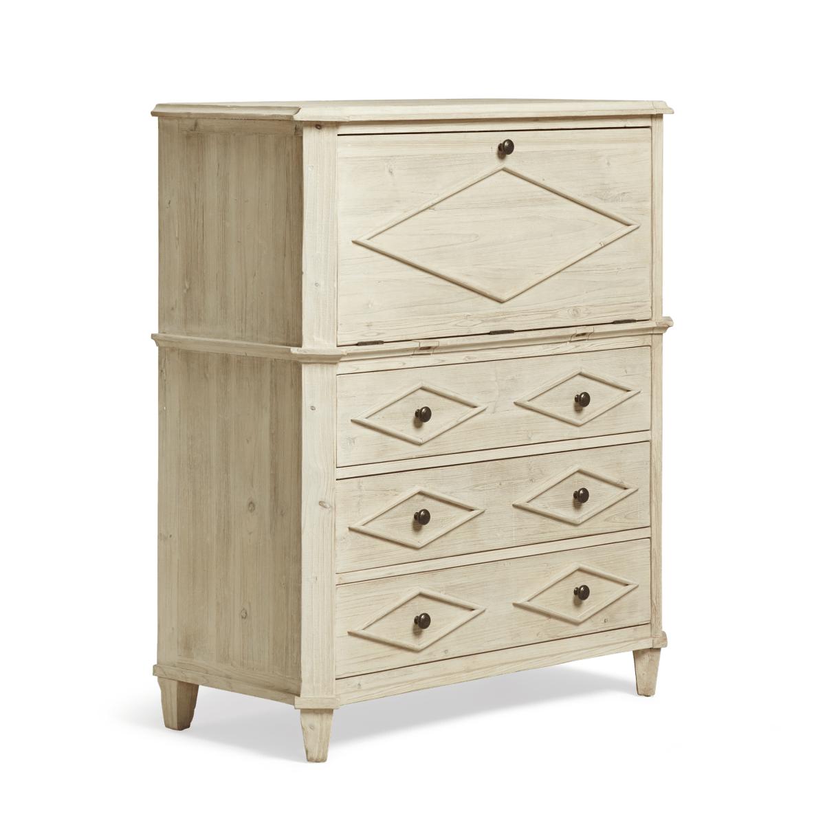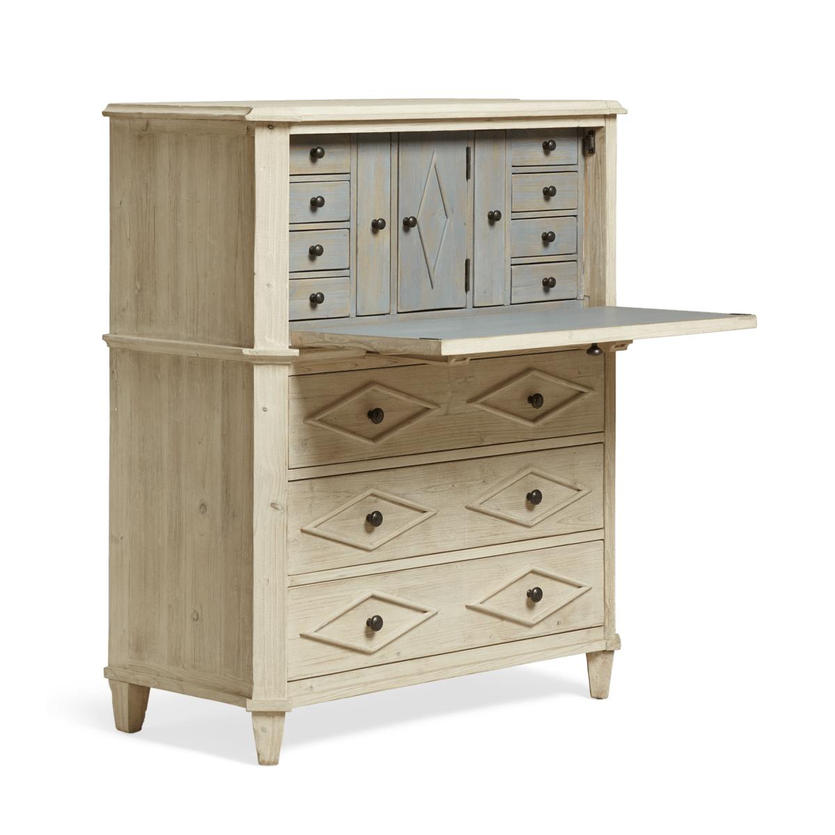 Have you ever wished for a little more storage in your home office or dressing room? Enter the Briolette Bureau; with eleven drawers (eight of which are hidden inside along with two box files) as well as one central cupboard, there is room for all your workspace essentials. While the classic, rustic French design – complete with fold-down table on pull-out supports – is based on an antique, it's ready for the demands of a modern home too; there's a hole in the back for cables that keeps wires tidy and hidden from view. The soft tones of the painted wood finish also help inspire a calm, clear mind when working.