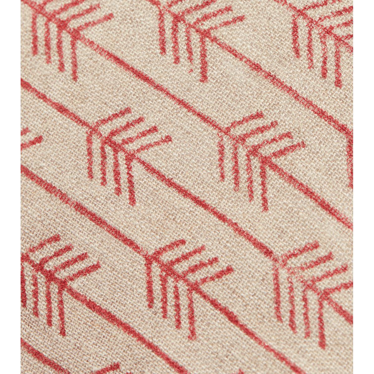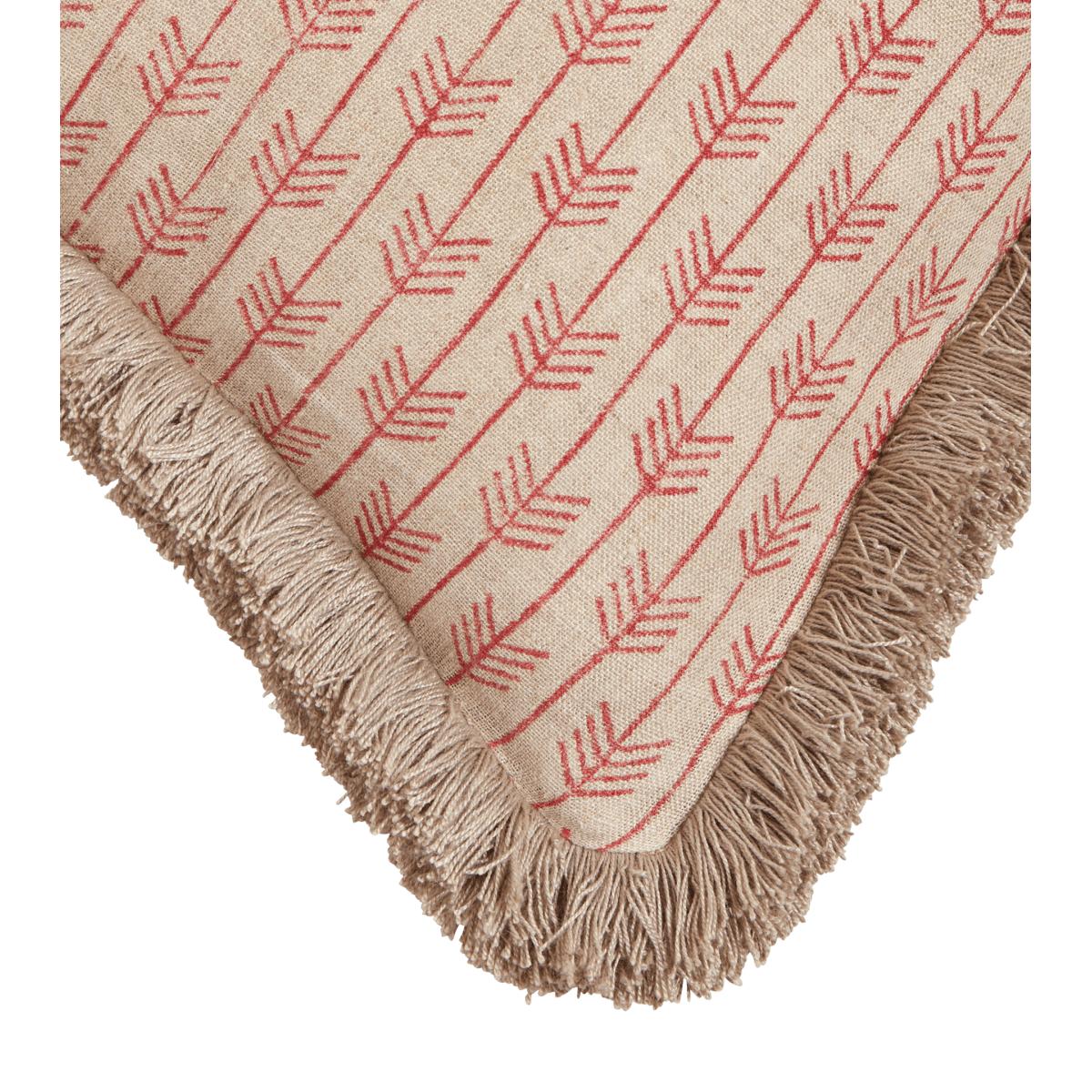 Featuring a lively red block-printed pattern, this natural linen pillow cover makes a fun addition to a sofa or chair. While the striped pattern draws attention, the cover's fringed edging lends it a playful finish.