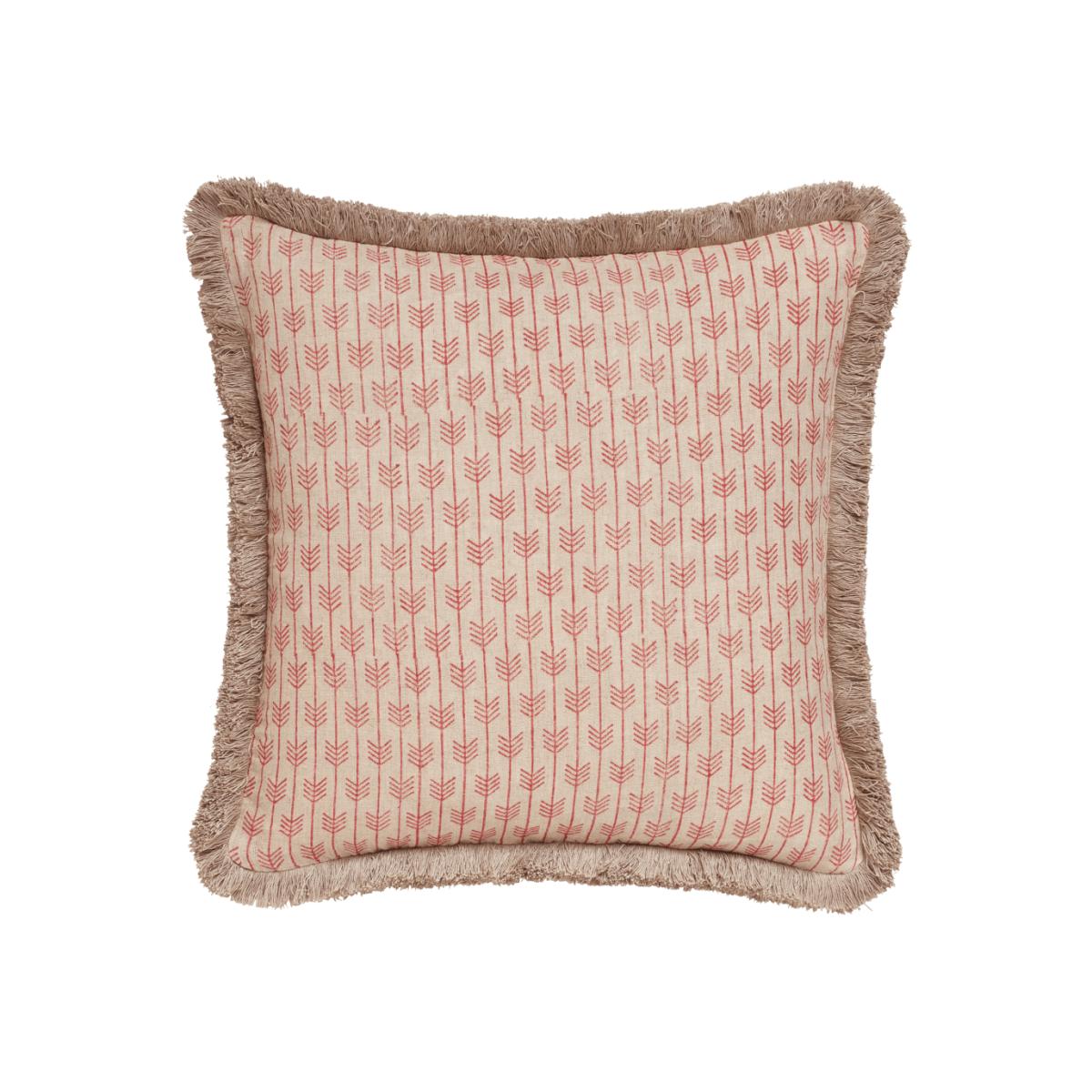 OKA, Caladia Cushion Cover With Fringing - Red Madder, Cushion Covers, Linen, Floral