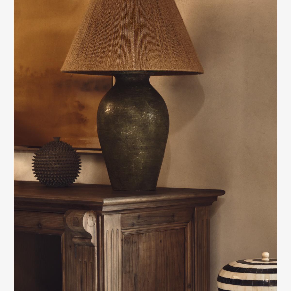 I love this lamp because of its versatile distressed green finish which adds a subtle rustic charm, making it ideal for both classic and contemporary interiors. It works particularly well in living rooms or bedrooms that feature natural materials or antique-inspired decor. For practical styling, try pairing it with textured cushions or throws to bring out its earthy tones, or position it on a side table to create a cosy, layered look. Its warm, muted hue makes it easy to incorporate into spaces with other green or neutral accents, giving your room a relaxed, welcoming feel.