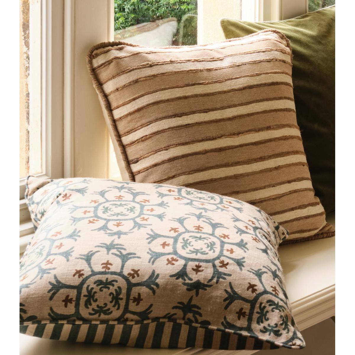 Combining the classic stripe with rustic appeal, our Camber Cushion Cover is handwoven from 100% natural tussar silk. The silk is first collected and hand spun into thick yarn. Due to the natural materials and artisanal techniques used, each piece will have individual characteristics and textural quality that add to their charm.